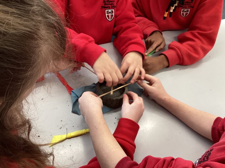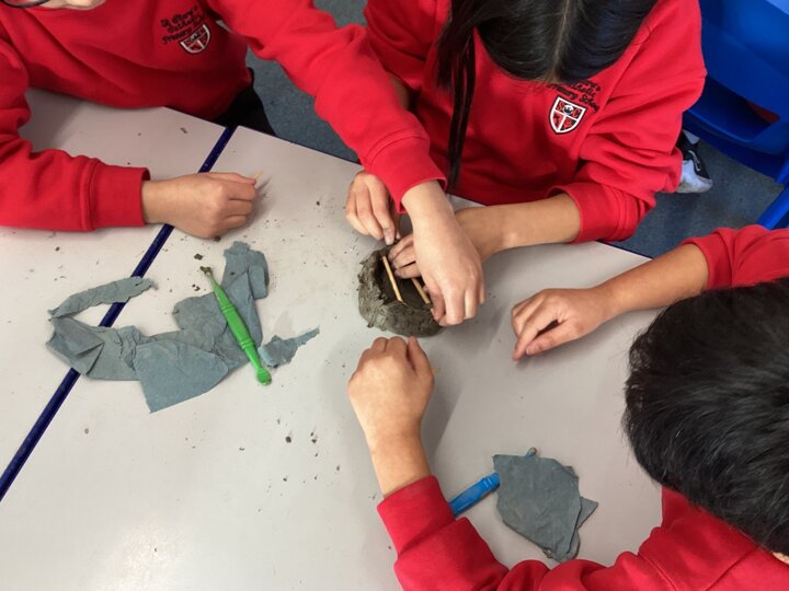 In our final lesson, we used our clay moulds to create our finished dwellings. We added even more detail, carving roofs, windows, and doorways with great care. We kept checking the photographs and images to help us make sensible choices about shape, pattern, and texture.