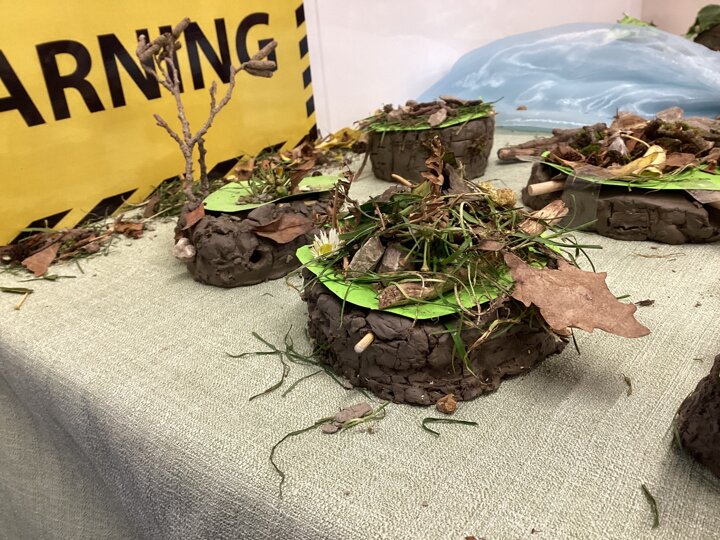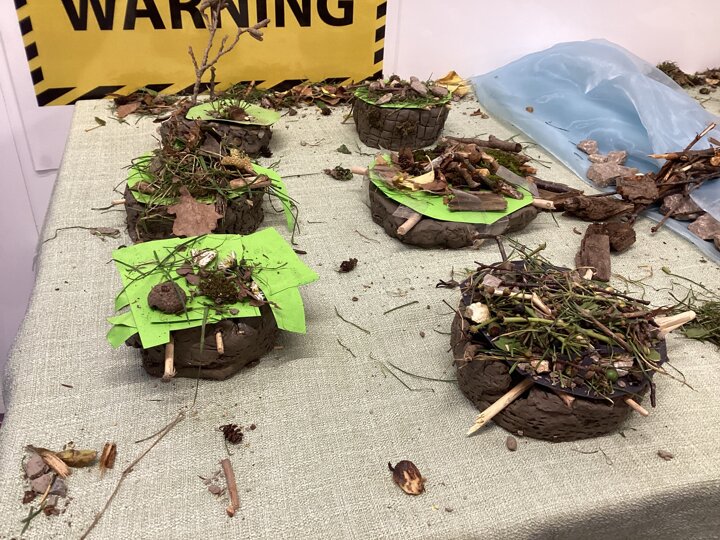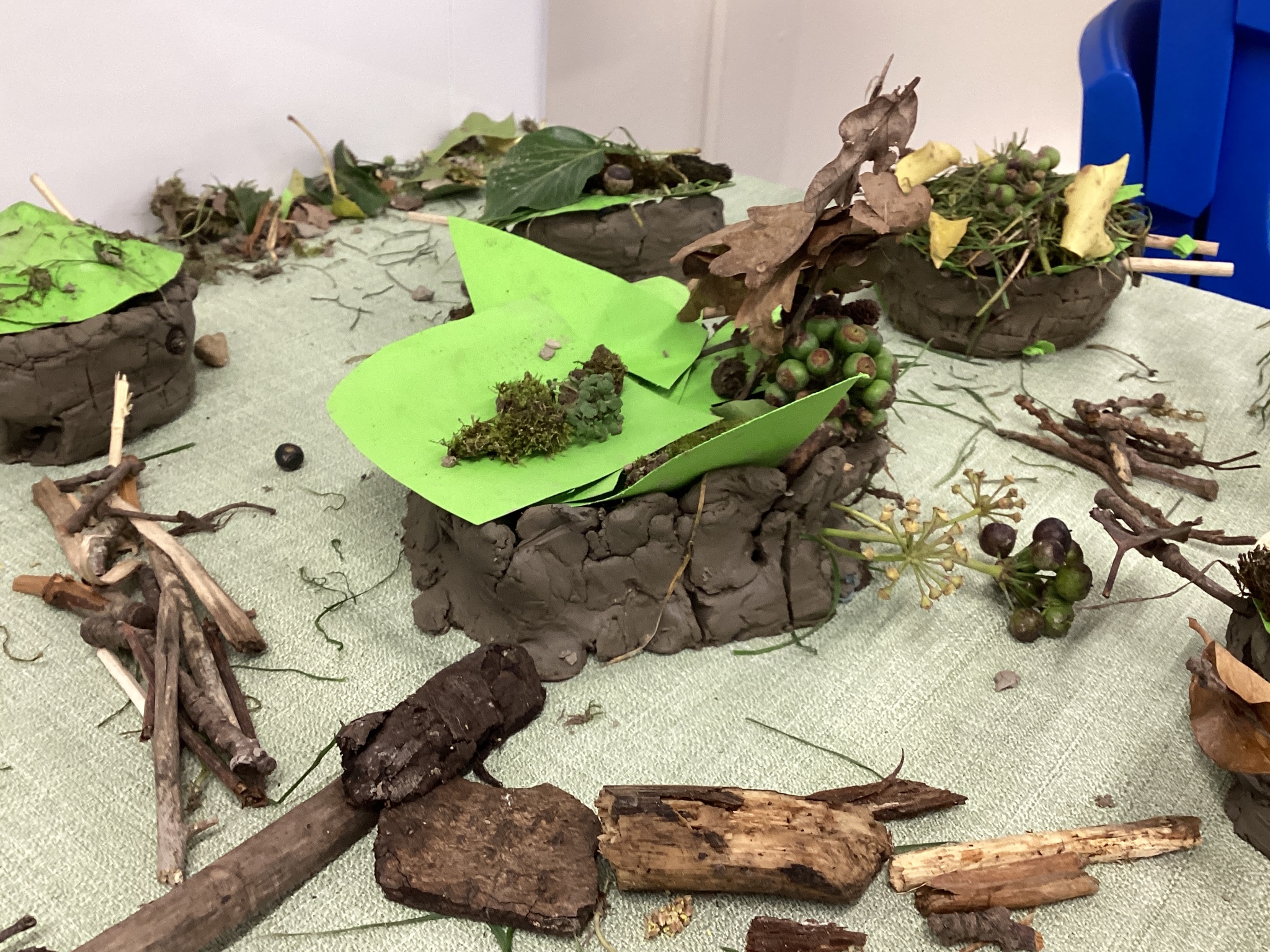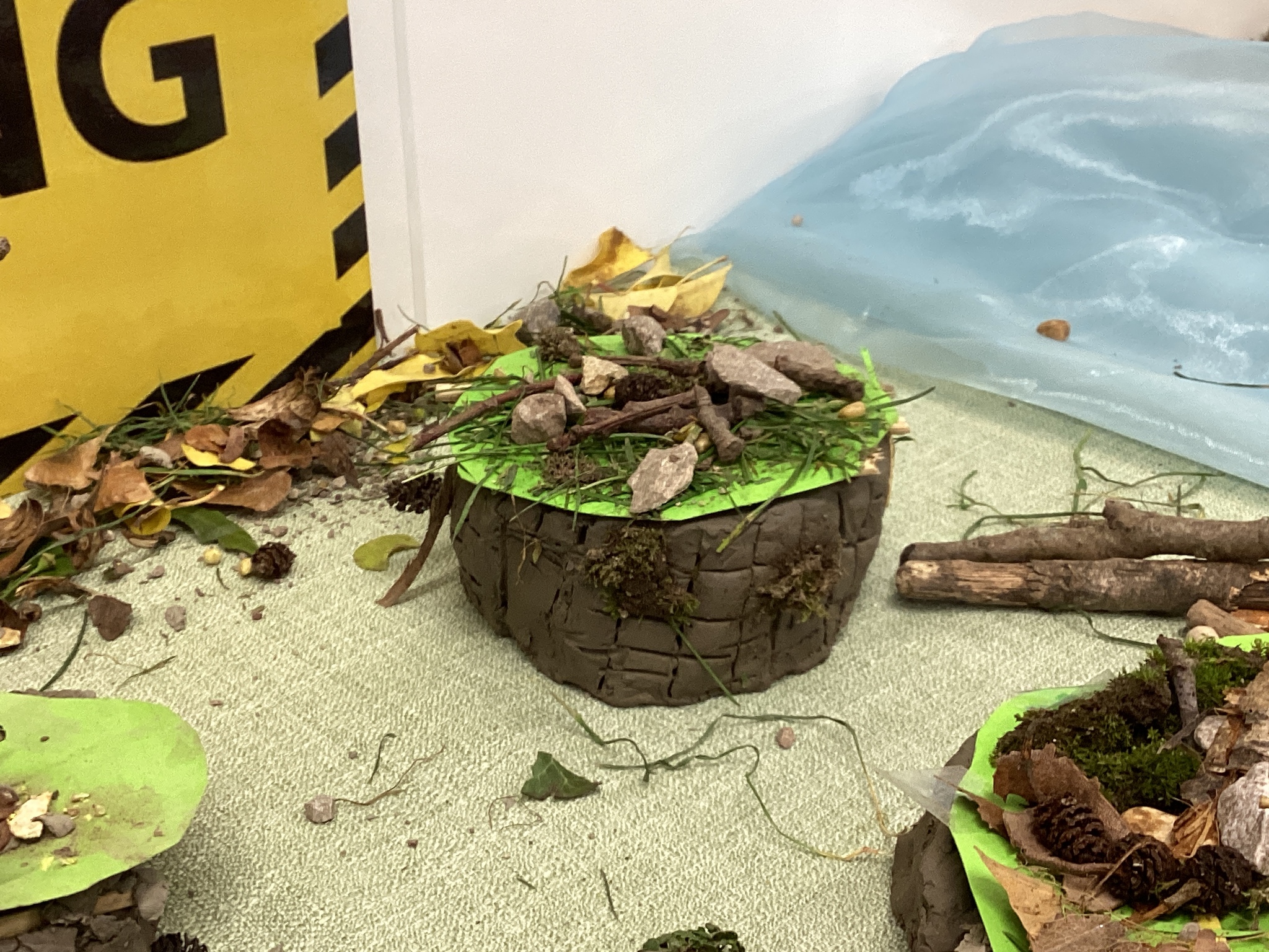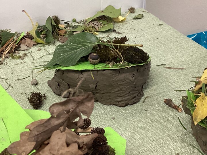 We went on a short nature walk around school and collected small stones, twigs, and leaves. It felt like going on a mini adventure! We then used these materials in our clay models to add extra texture and detail.