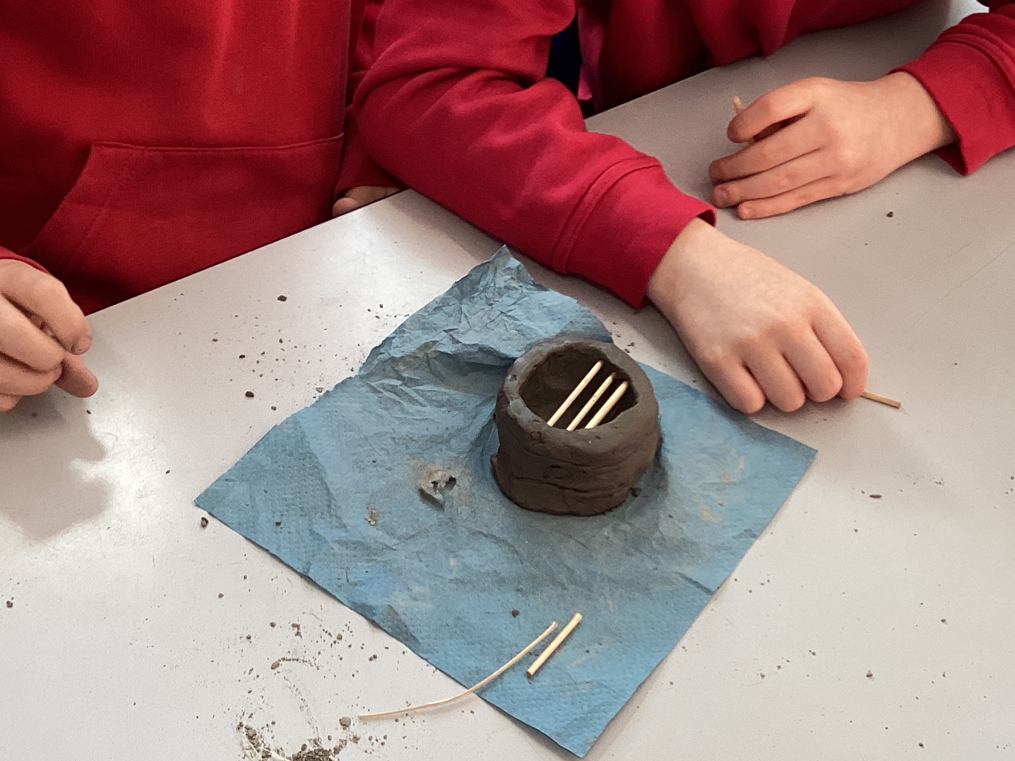 By the end of the first part of the project, we had moulded our clay into detailed Stone Age houses. We carefully carved patterns and added natural materials to make our models look realistic and strong, just like the real homes at Skara Brae.