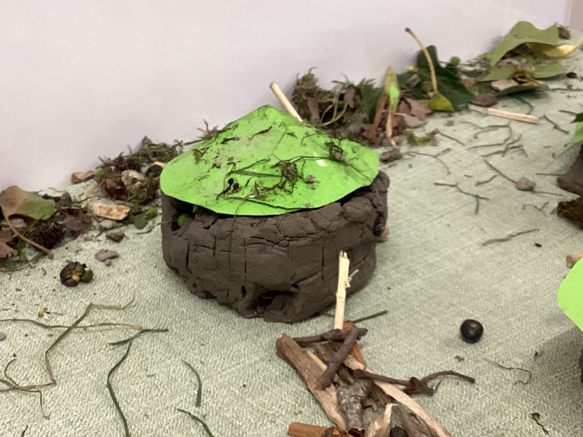 Adding real natural objects helped our houses look even more authentic and connected to the Stone Age.