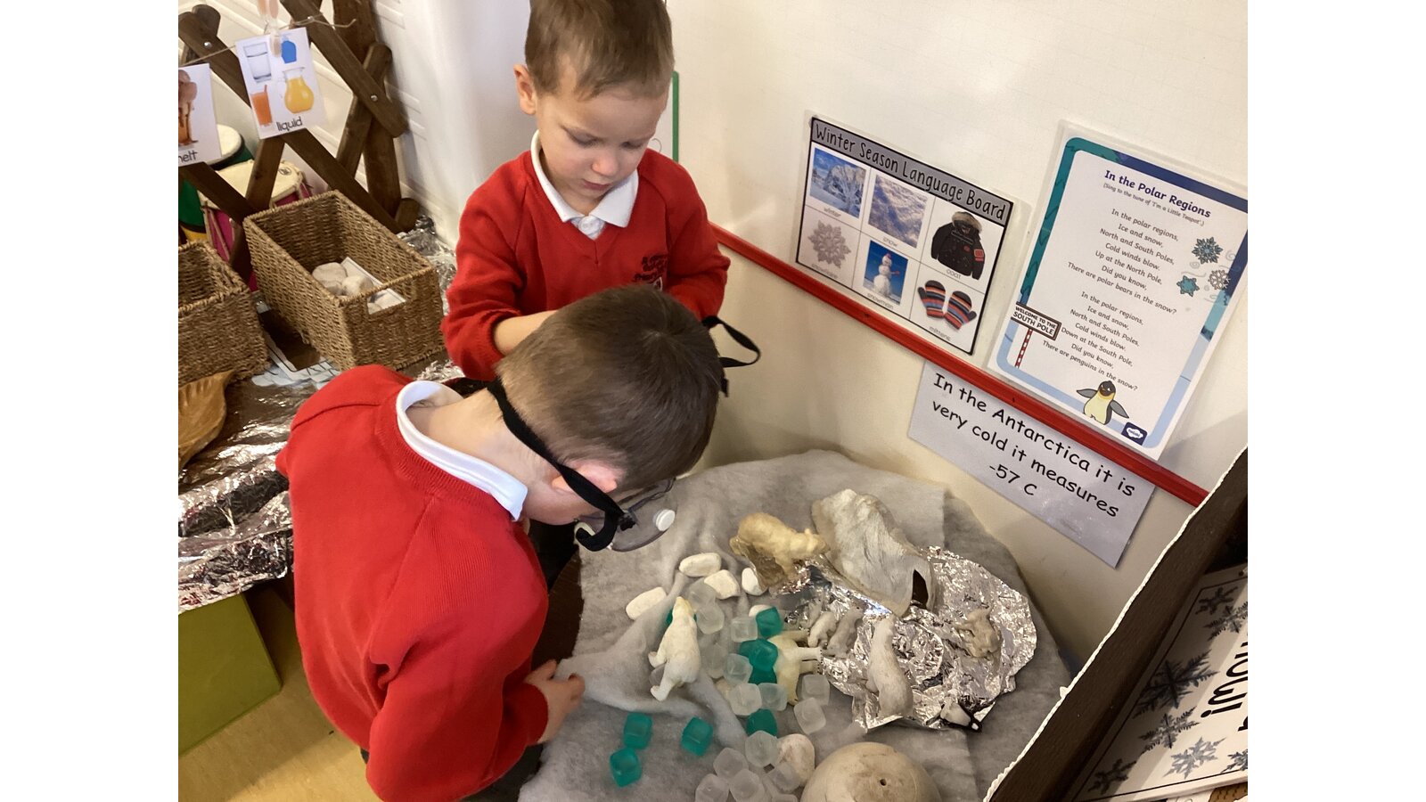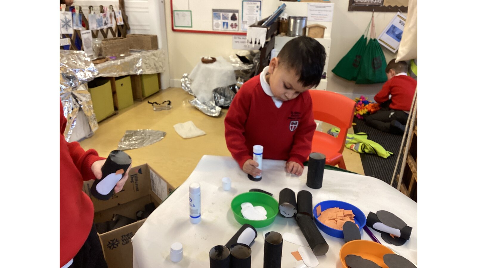 We have been learning all about the animals in the polar regions. We have had some very cold days where we have been able to think about what it would be like somewhere even colder than England. When looking at signs of winter here in Preston we wondered if it was the same in Antarctica. We explored where we were on the map and where Antarctica is thinking if it would take us a long time to get there.