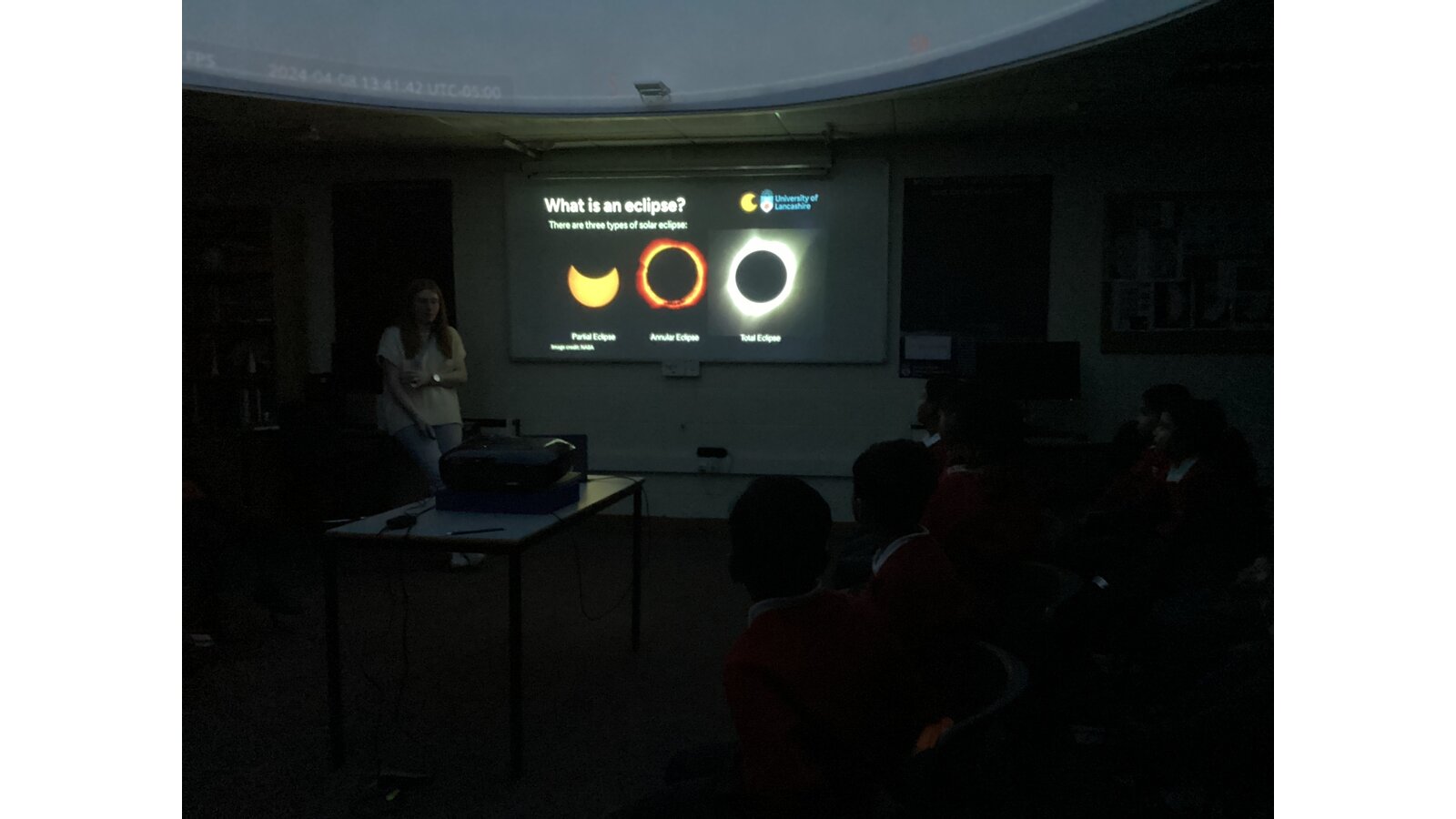 When we arrived, we got the chance to look at the planetarium. We learned all about solar eclipses, planets, stars and galaxies. We were amazed at how huge our Universe is.