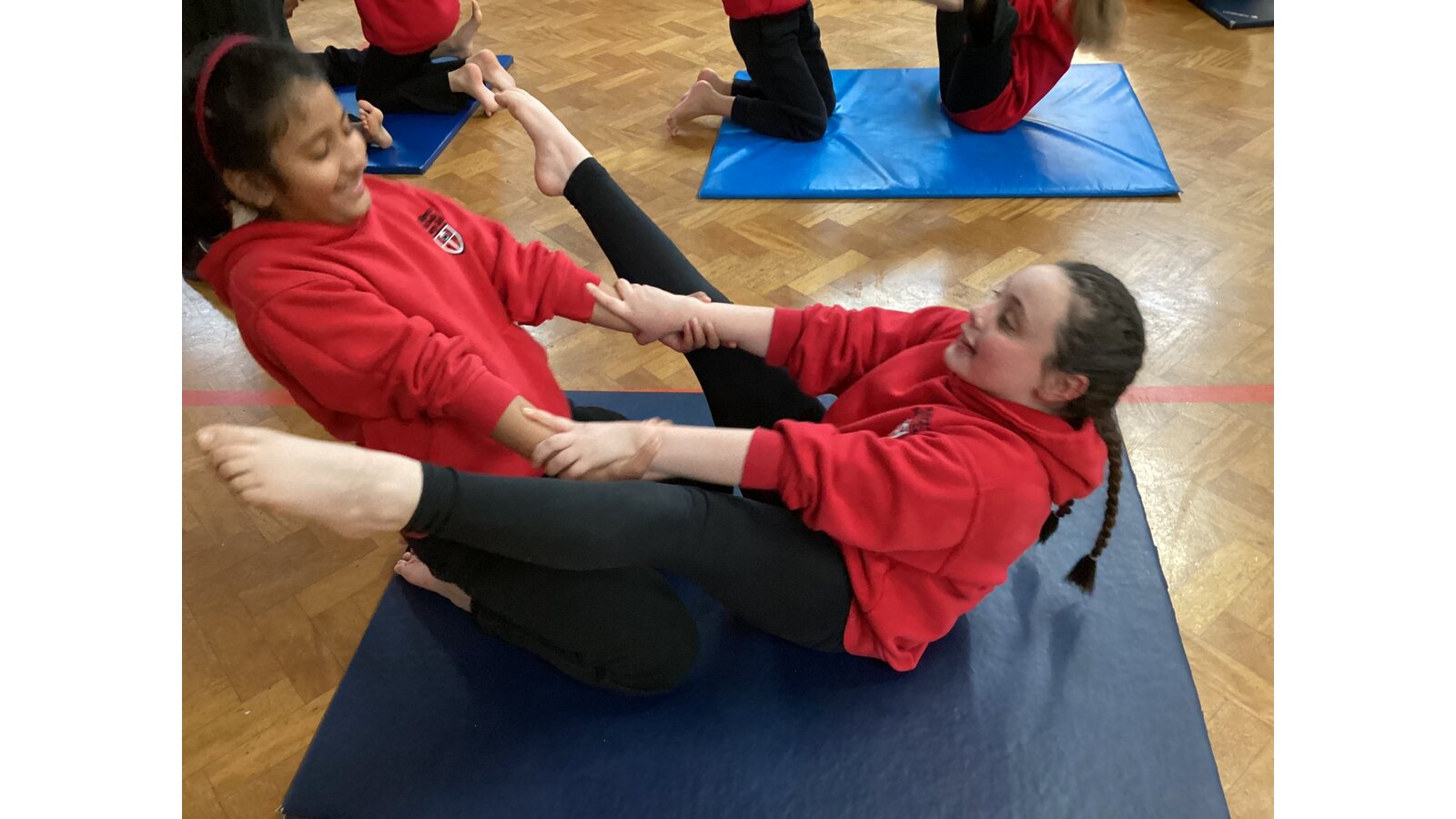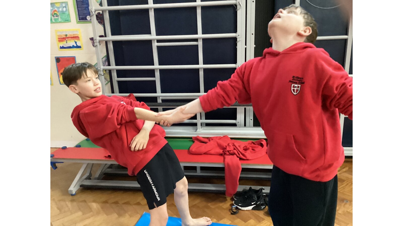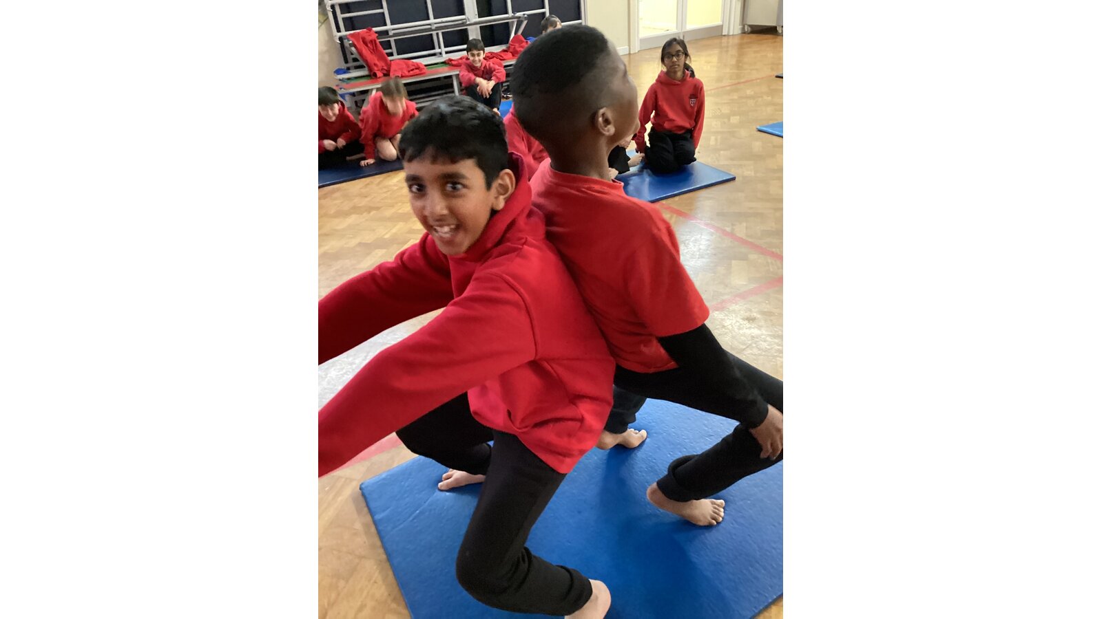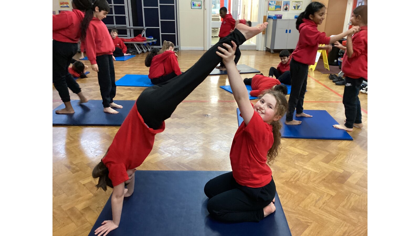 Children have been working with a partner to create stable shapes where each person relies on the other to stay balanced. This has been a brilliant way to develop trust, body control and communication. We’ve seen everything from simple shoulder-to-shoulder balances to more adventurous ideas as their confidence has grown!