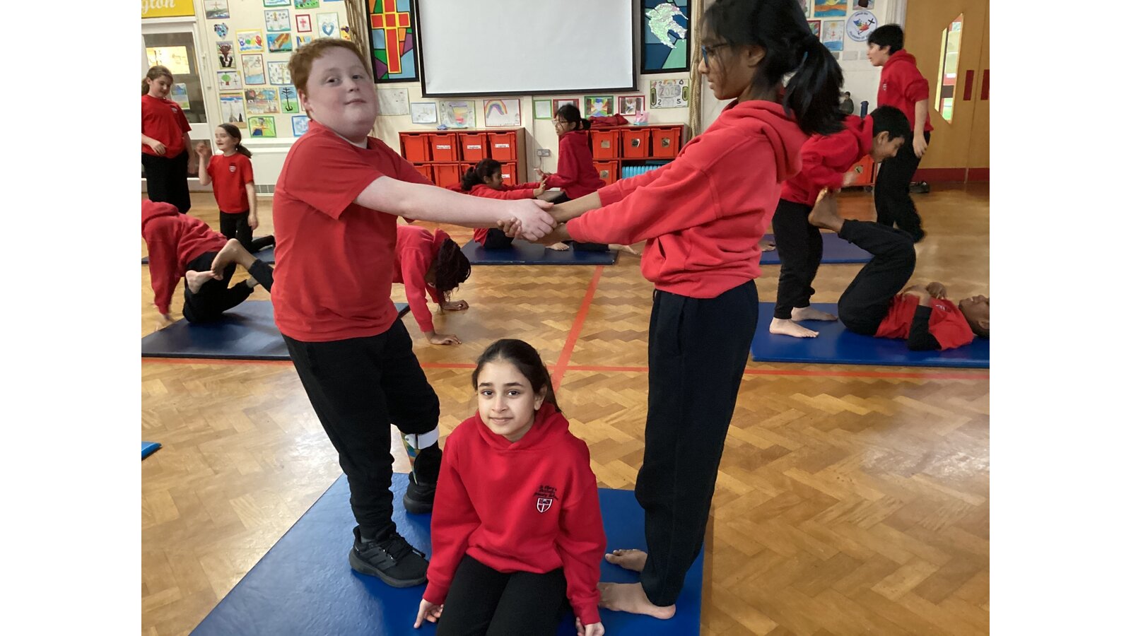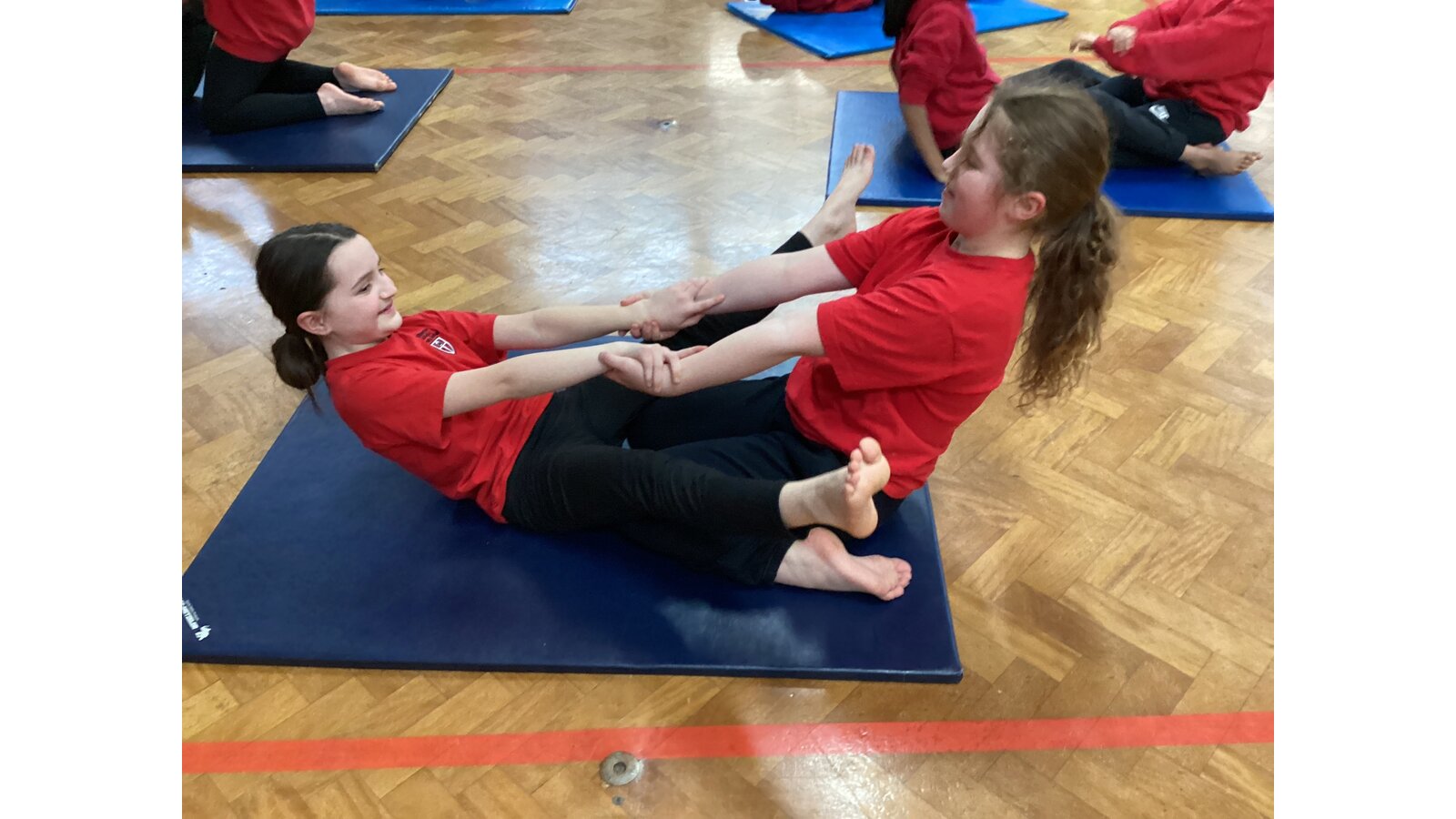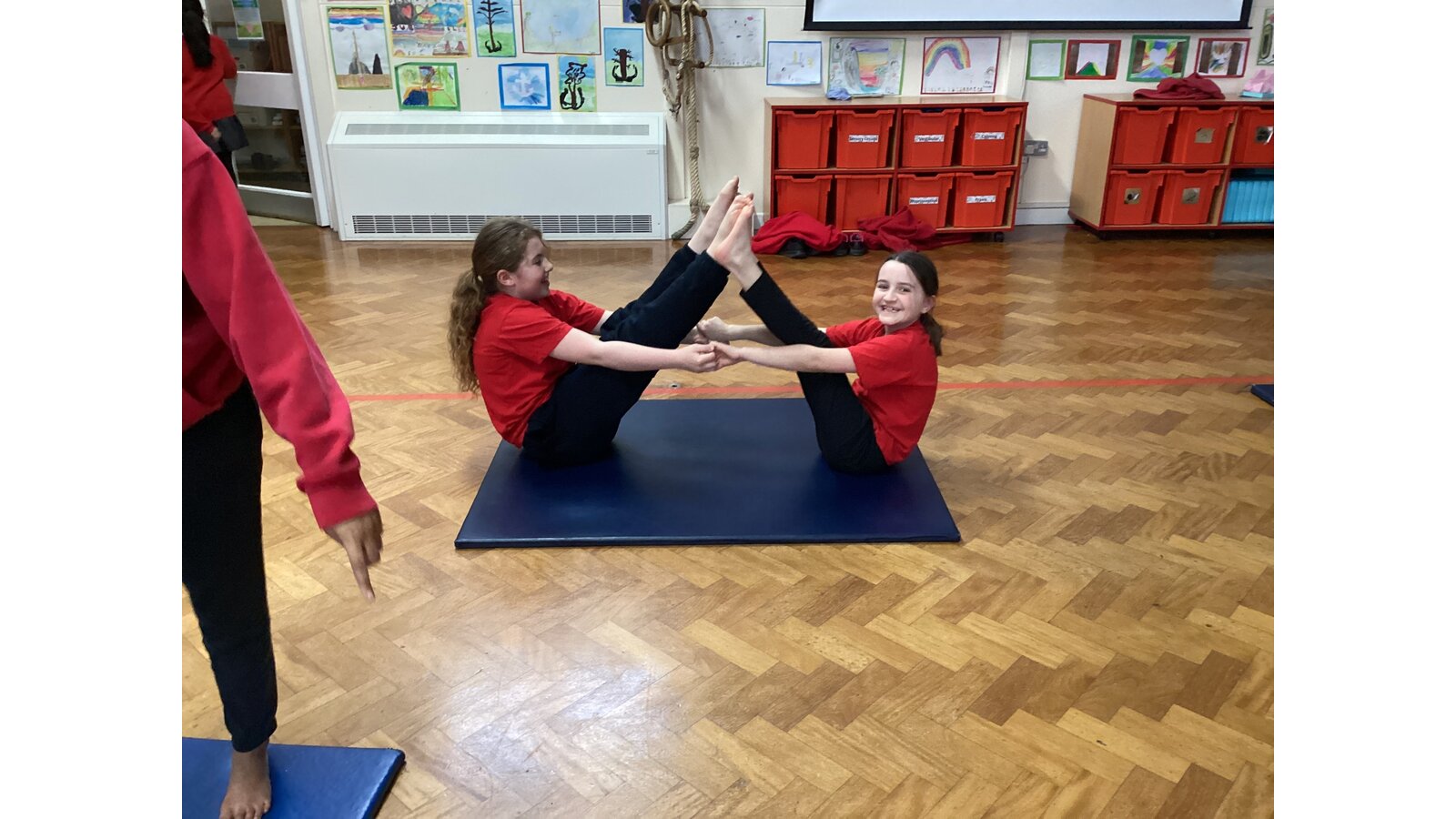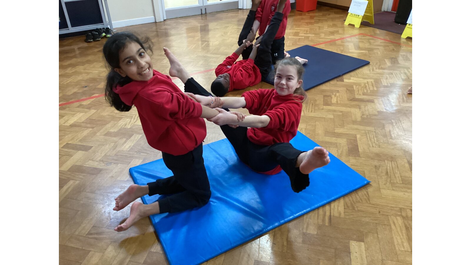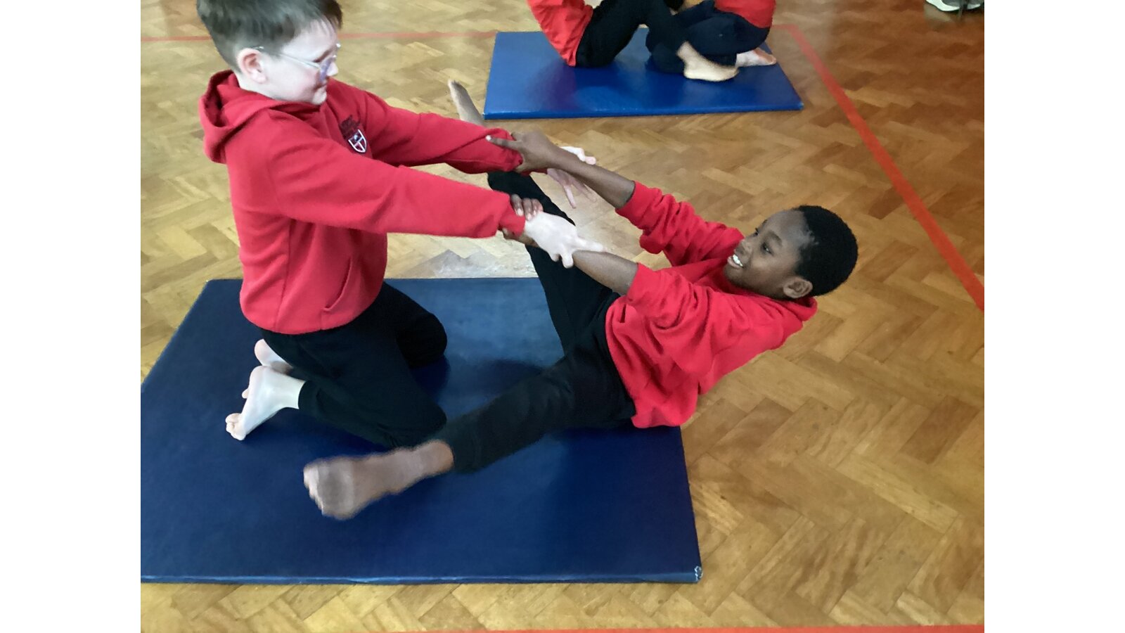 Children have been working with a partner to create stable shapes where each person relies on the other to stay balanced. This has been a brilliant way to develop trust, body control and communication. We’ve seen everything from simple shoulder-to-shoulder balances to more adventurous ideas as their confidence has grown!