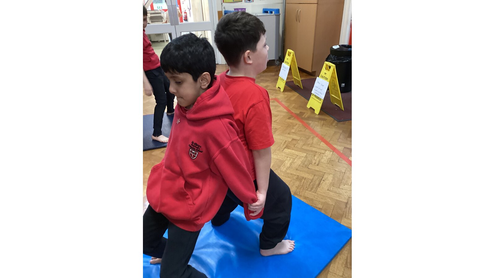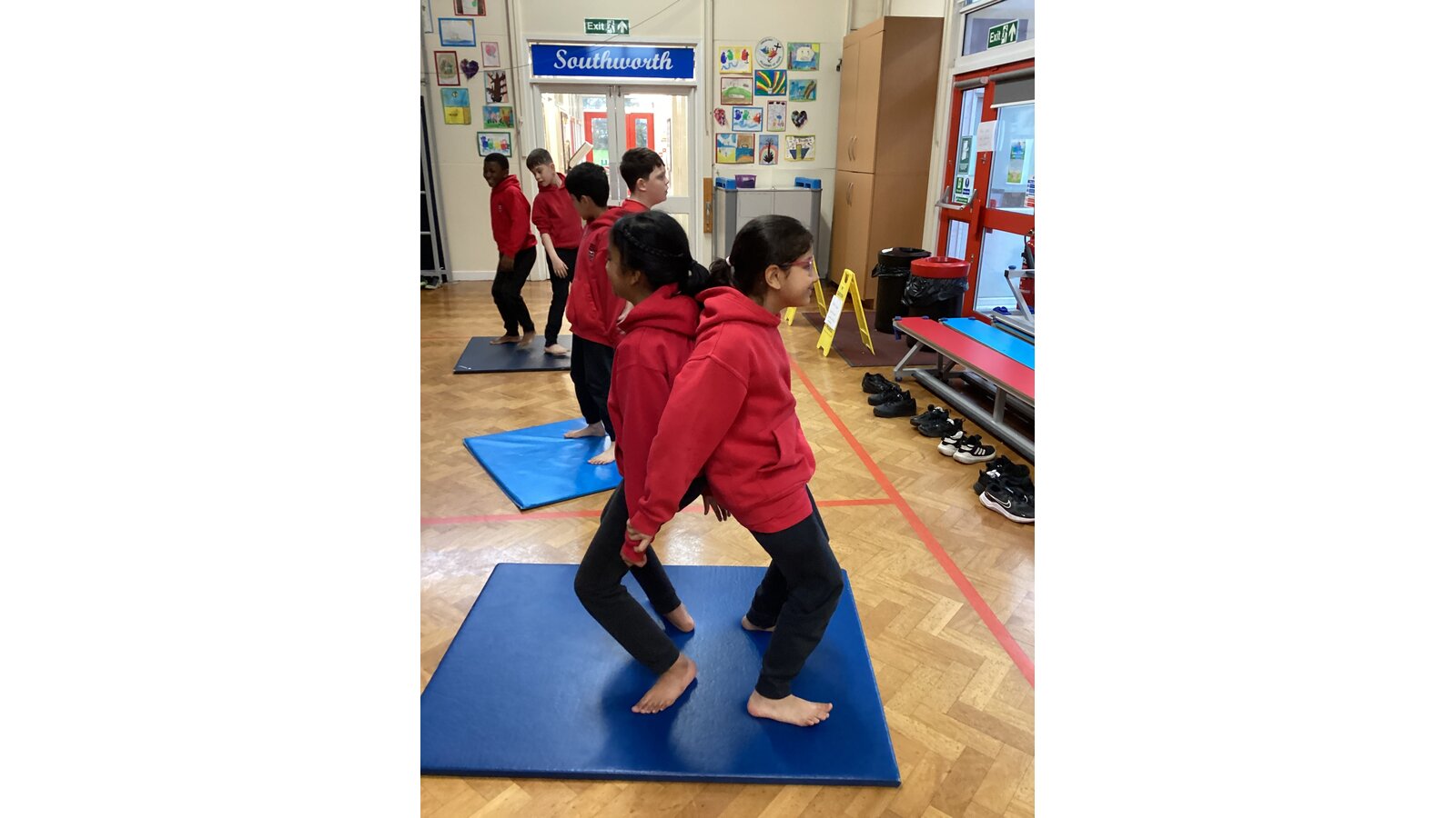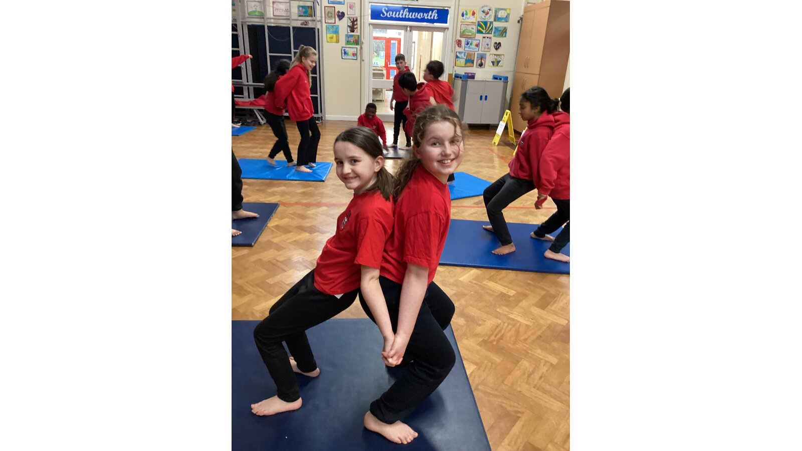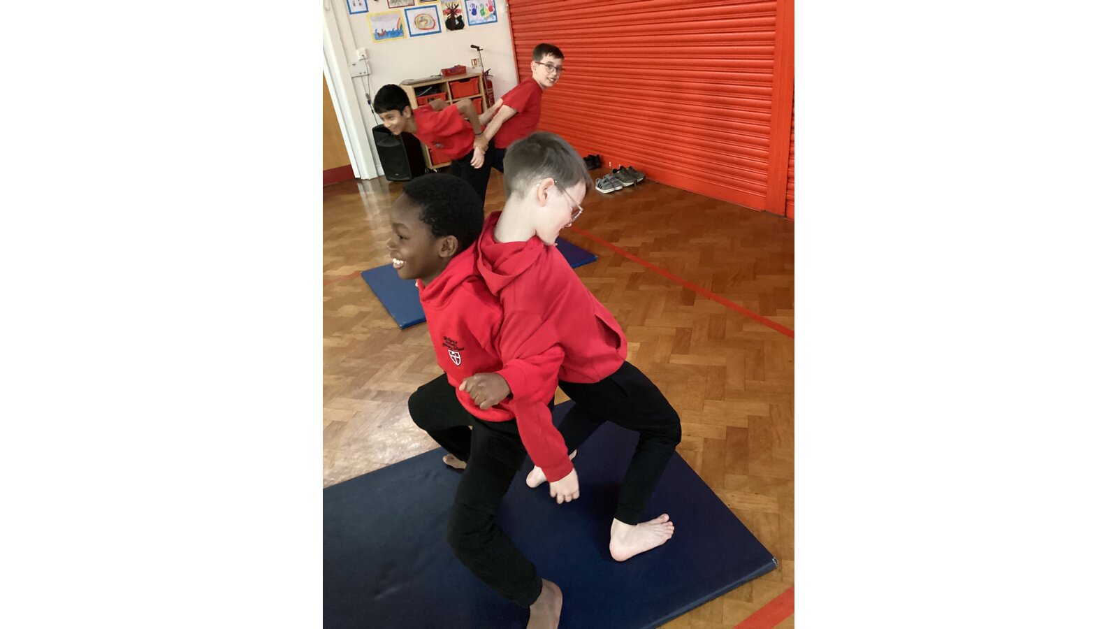 Children have been working with a partner to create stable shapes where each person relies on the other to stay balanced. This has been a brilliant way to develop trust, body control and communication. We’ve seen everything from simple shoulder-to-shoulder balances to more adventurous ideas as their confidence has grown!