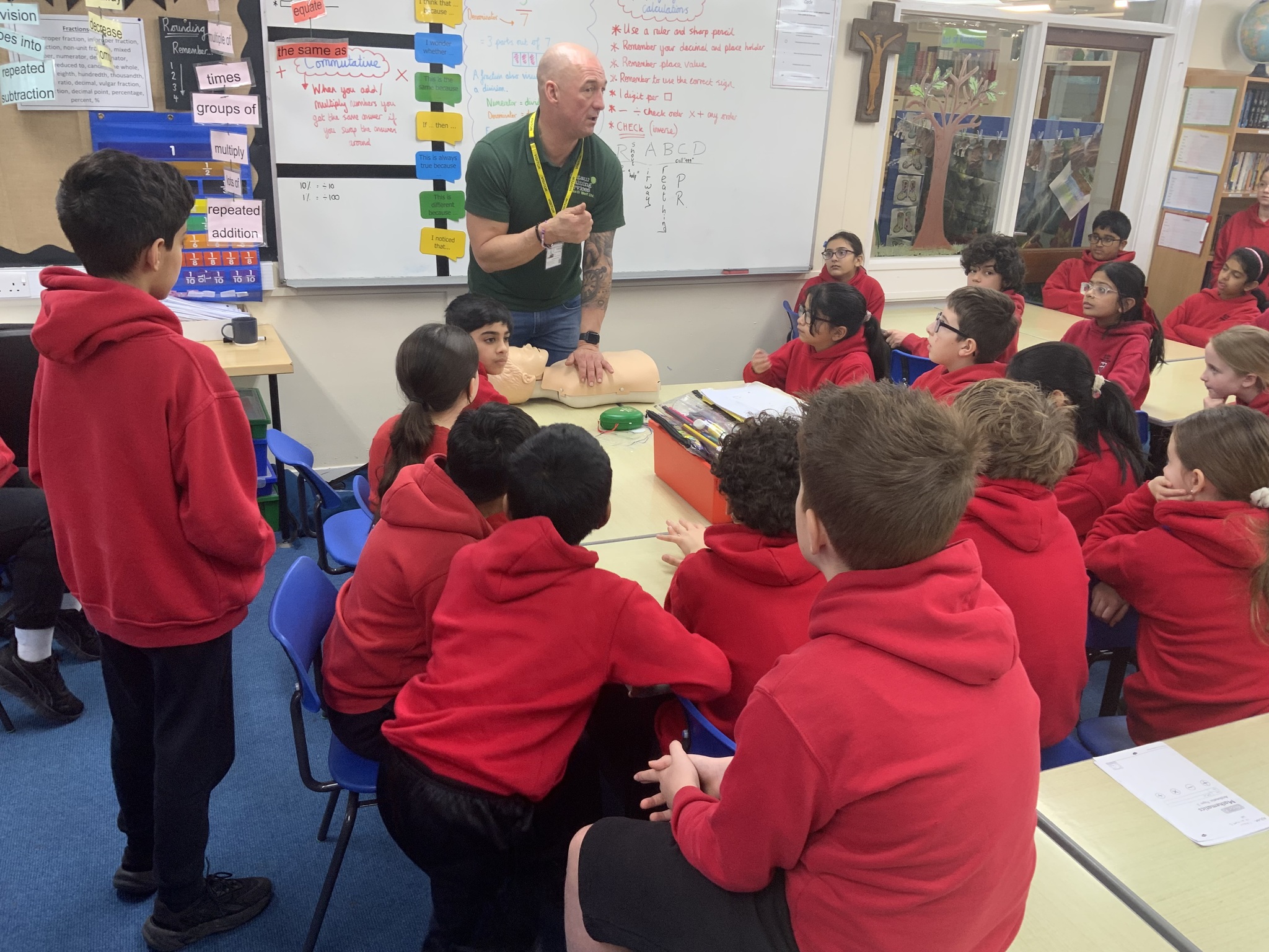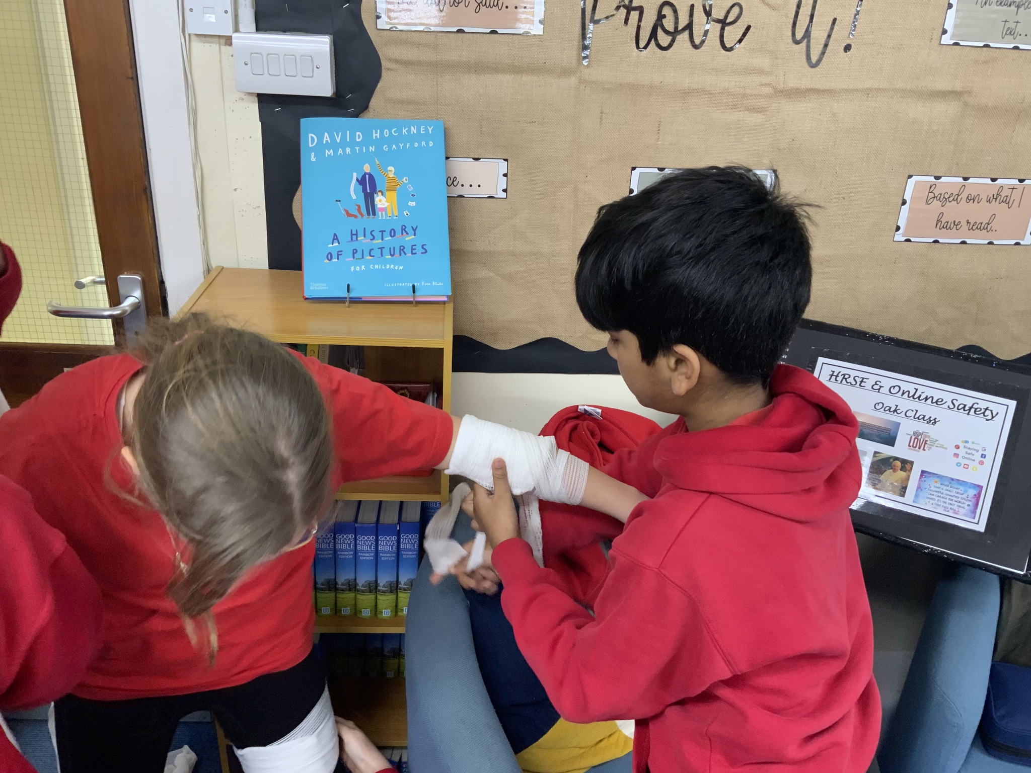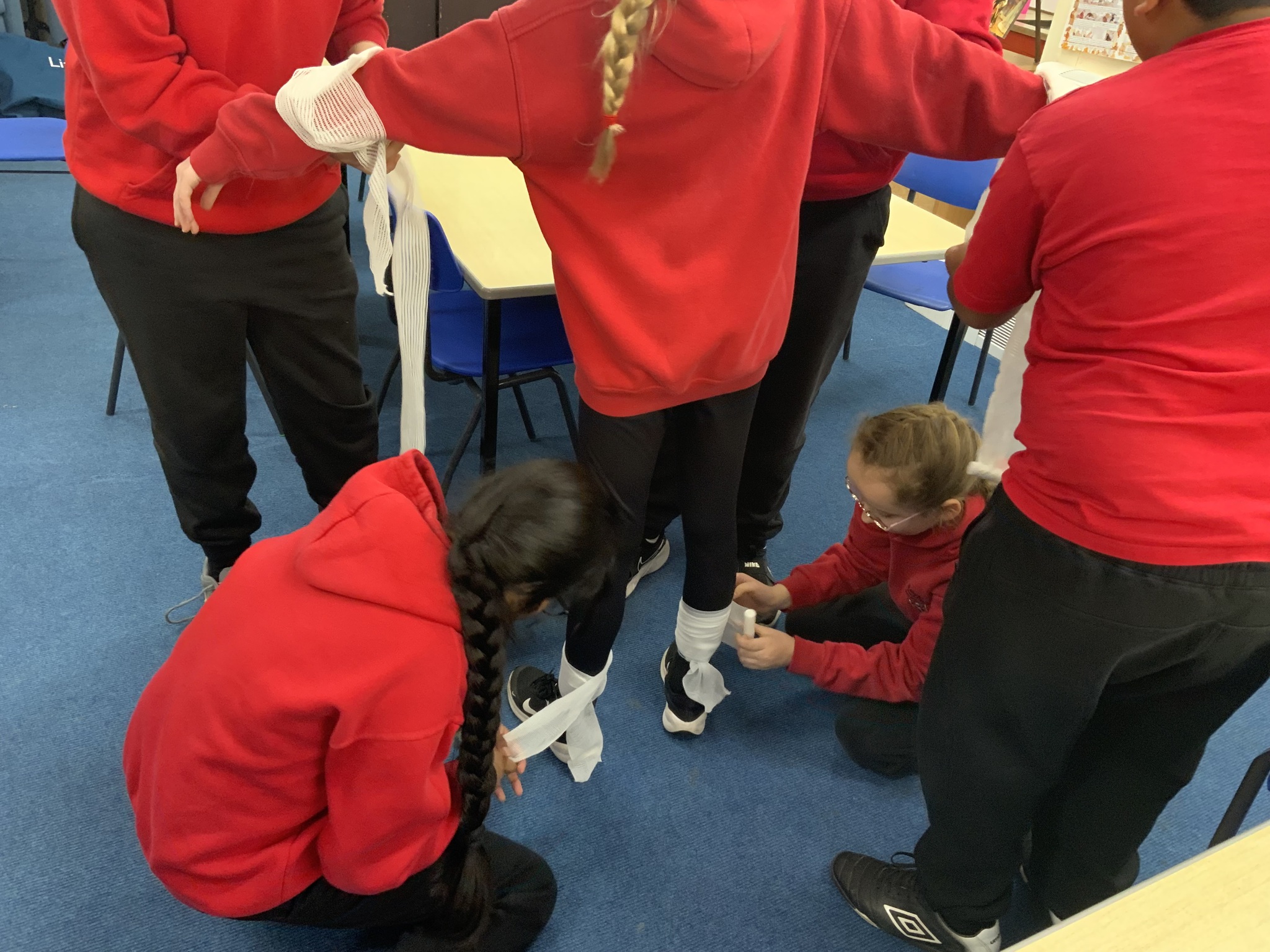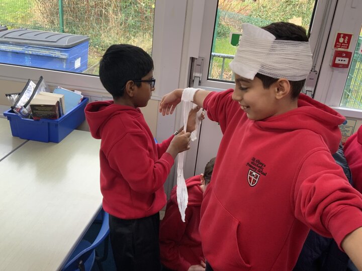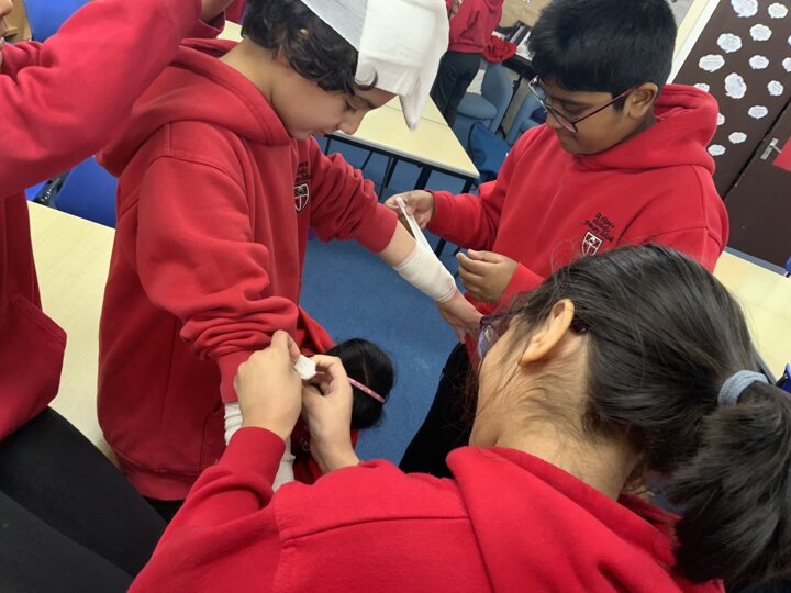 Year 6 also developed their skills, learning how to apply bandages carefully, support injuries and stay calm in emergency situations — all whilst looking out for one another - well done!
