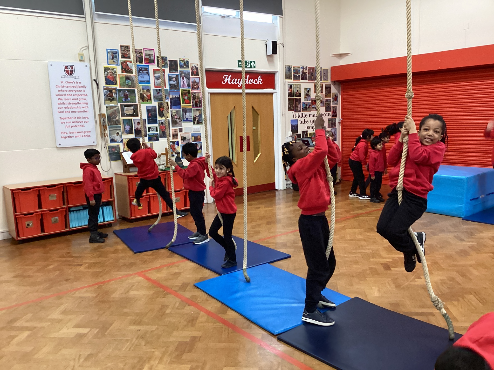 In PE, we used the large apparatus to perform gymnastic moves in different ways ready to adapt our sequences next week.