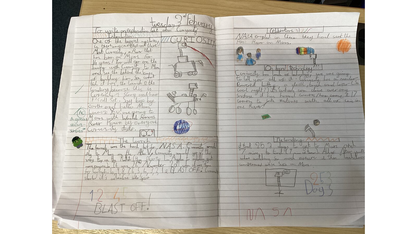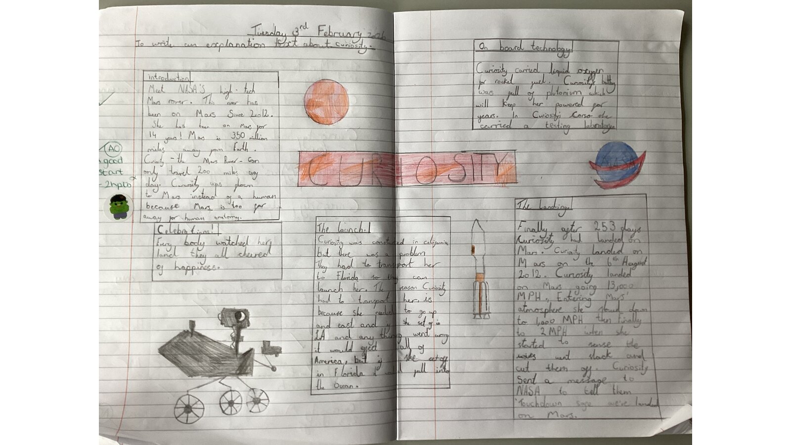Using these skills, the children have written their own explanation texts all about Curiosity and another all about astronauts—how they train, what they wear, and what they do in space. We’ve been so impressed by how confidently they’ve applied their grammar skills to make their writing clear, factual, and engaging.