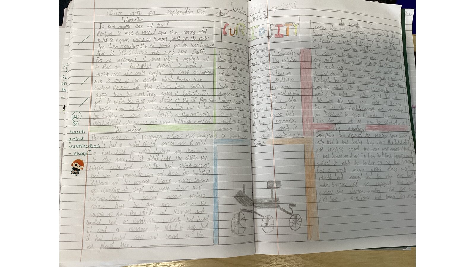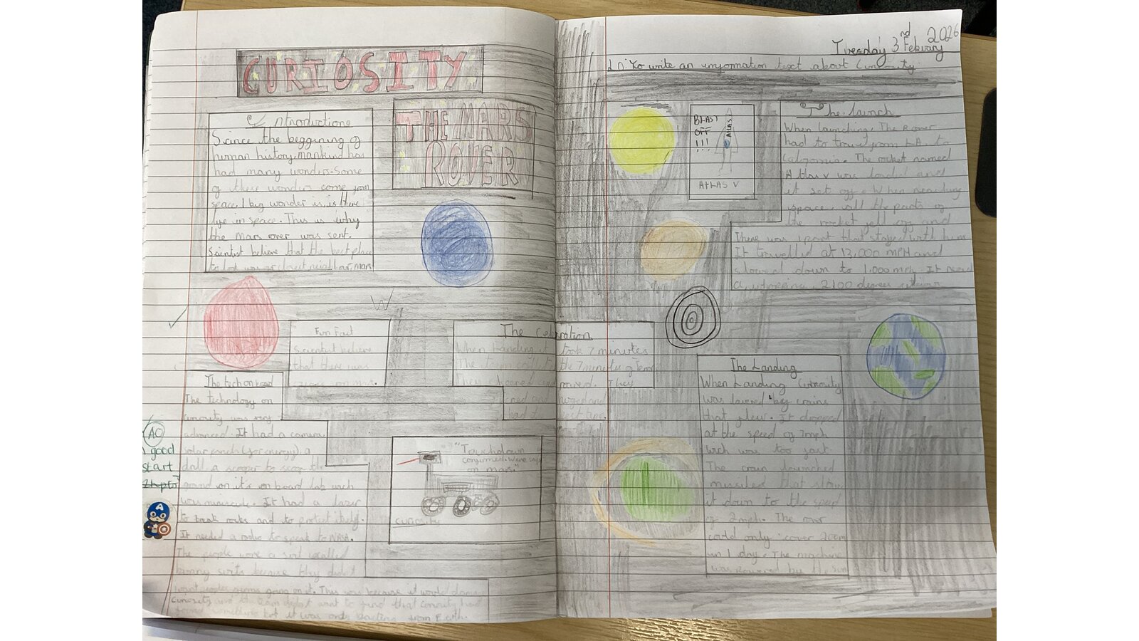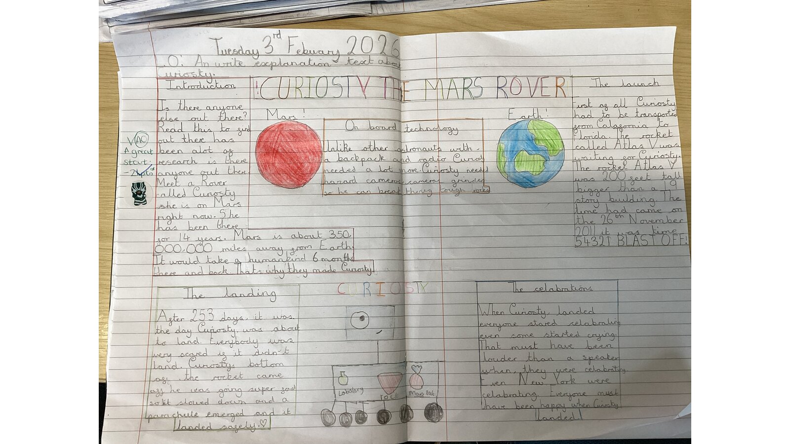 We’ve had an exciting few weeks in Year 5 as we’ve continued our journey through our Space topic. The children have been absolutely fascinated by our focus text, Curiosity: The Story of a Mars Rover, and it has sparked some brilliant discussions and writing.