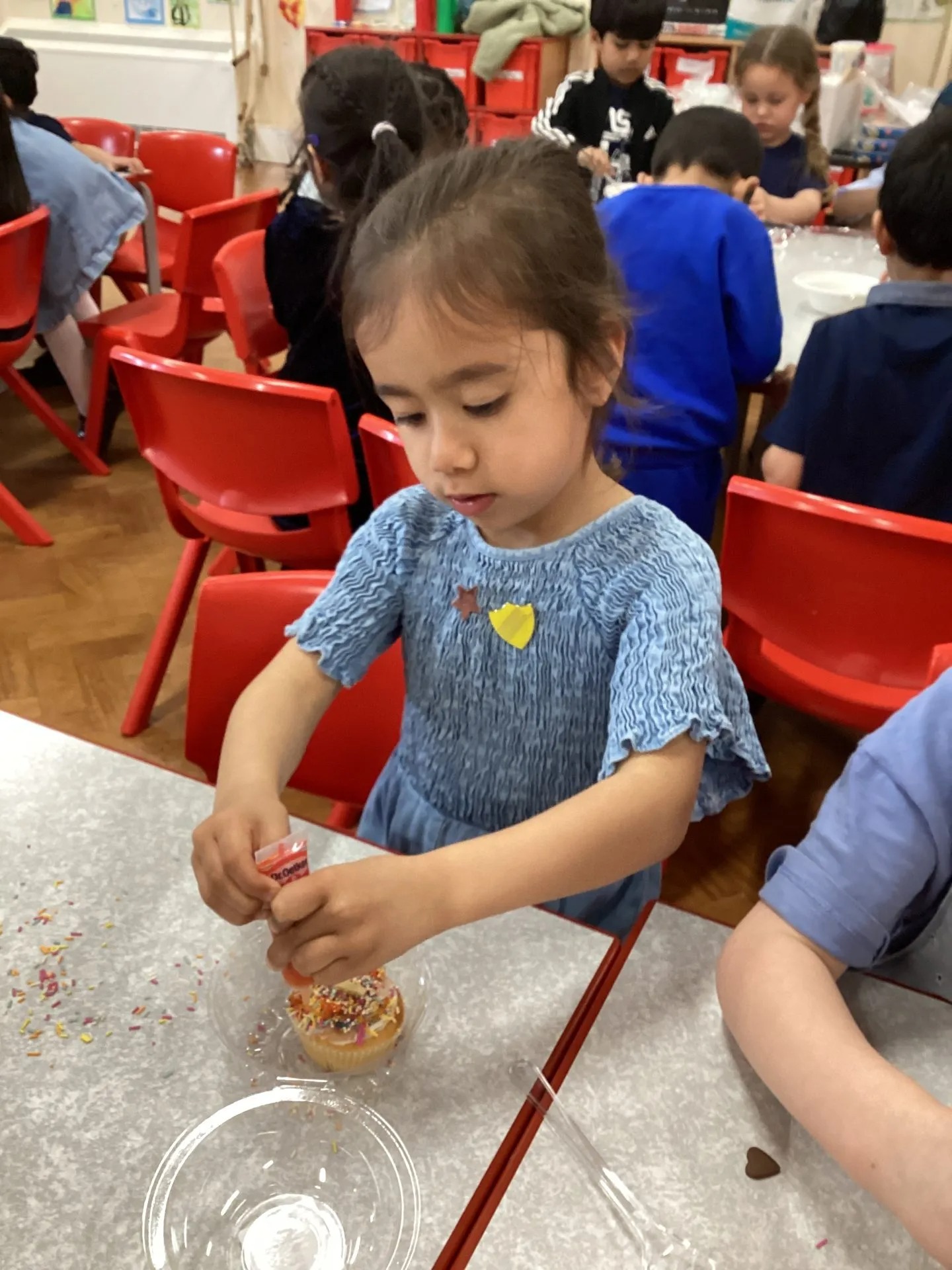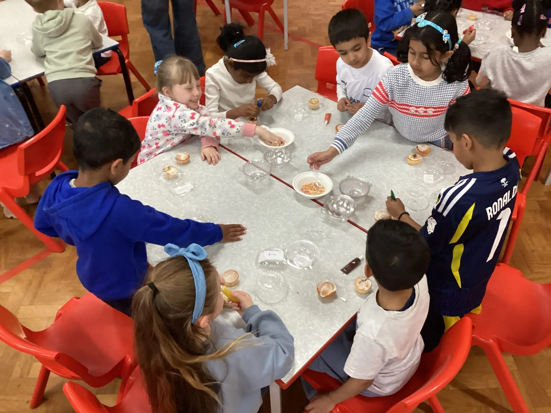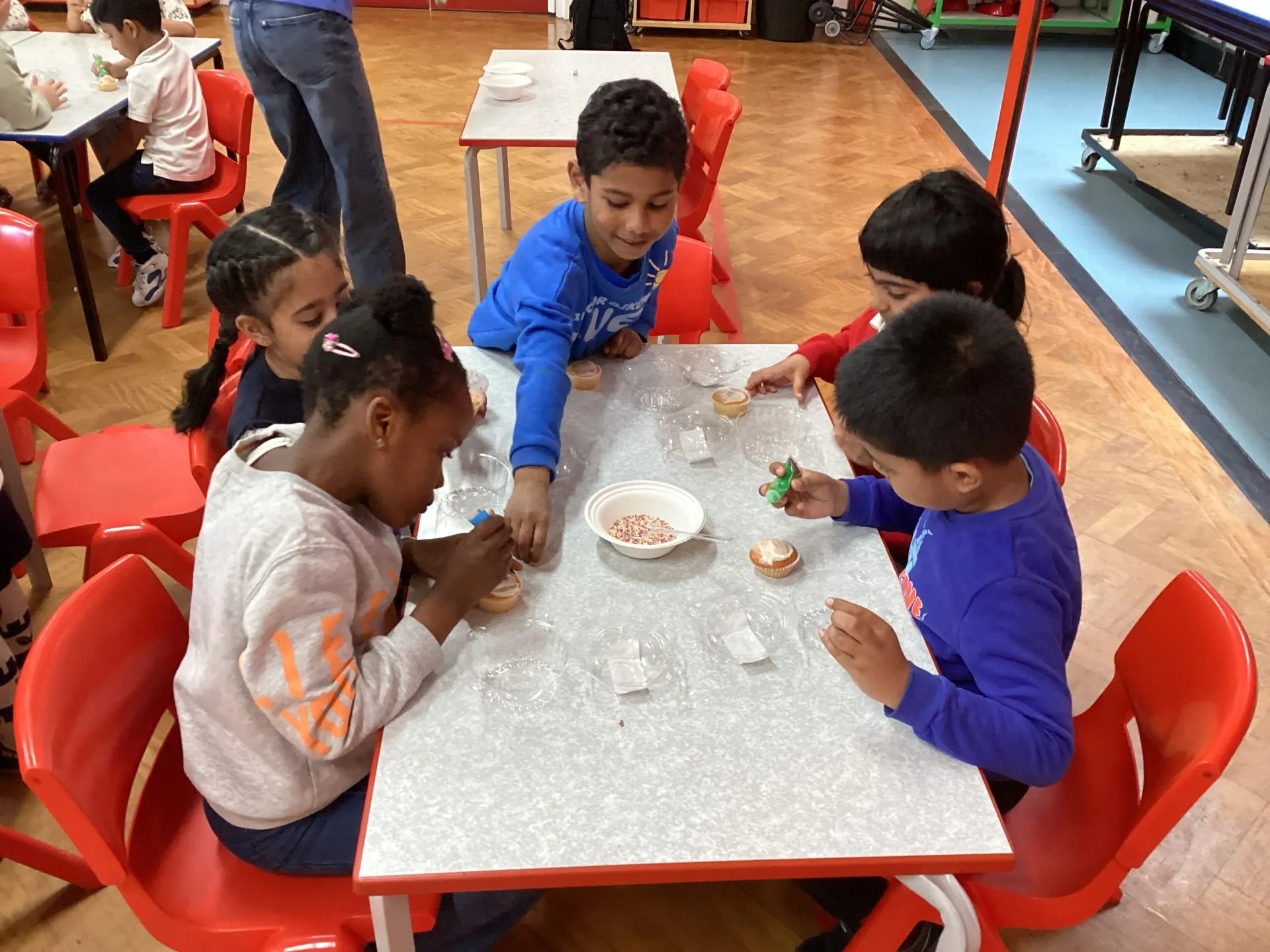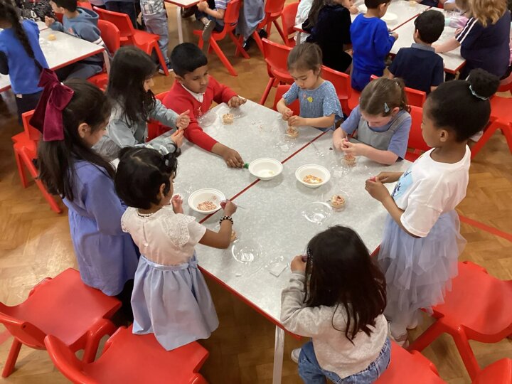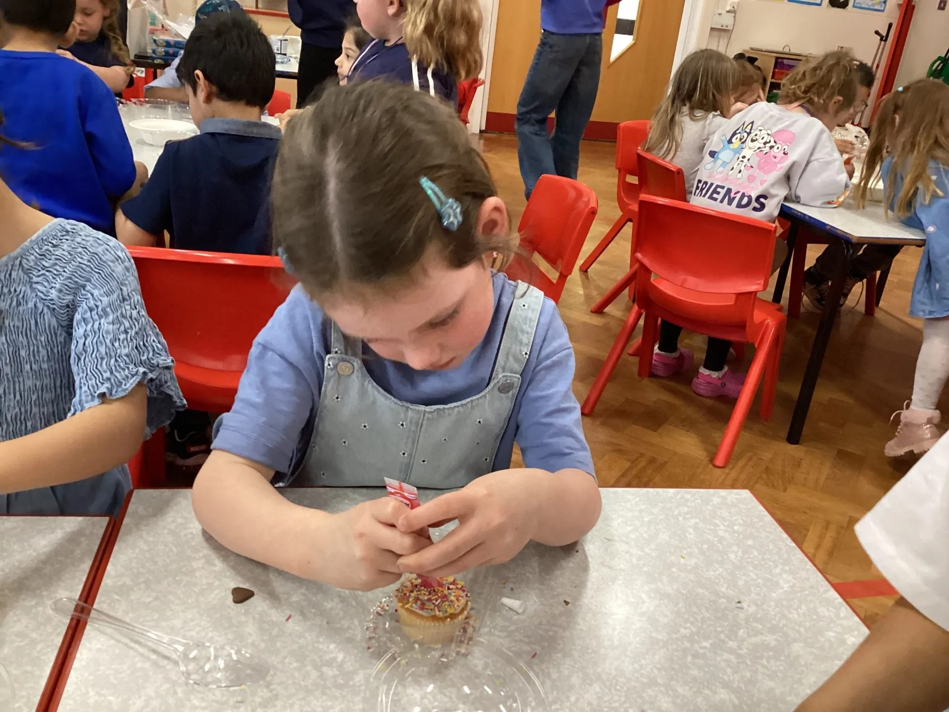 It was a bit tricky not to lick our fingers, but we tried our best! Everyone worked really hard to make their cakes special, and we can’t wait to give them to our mums. A big thank you to the PTFA for setting everything up—we had the best time! We hope our mums love their cakes (if we don’t eat them first!).