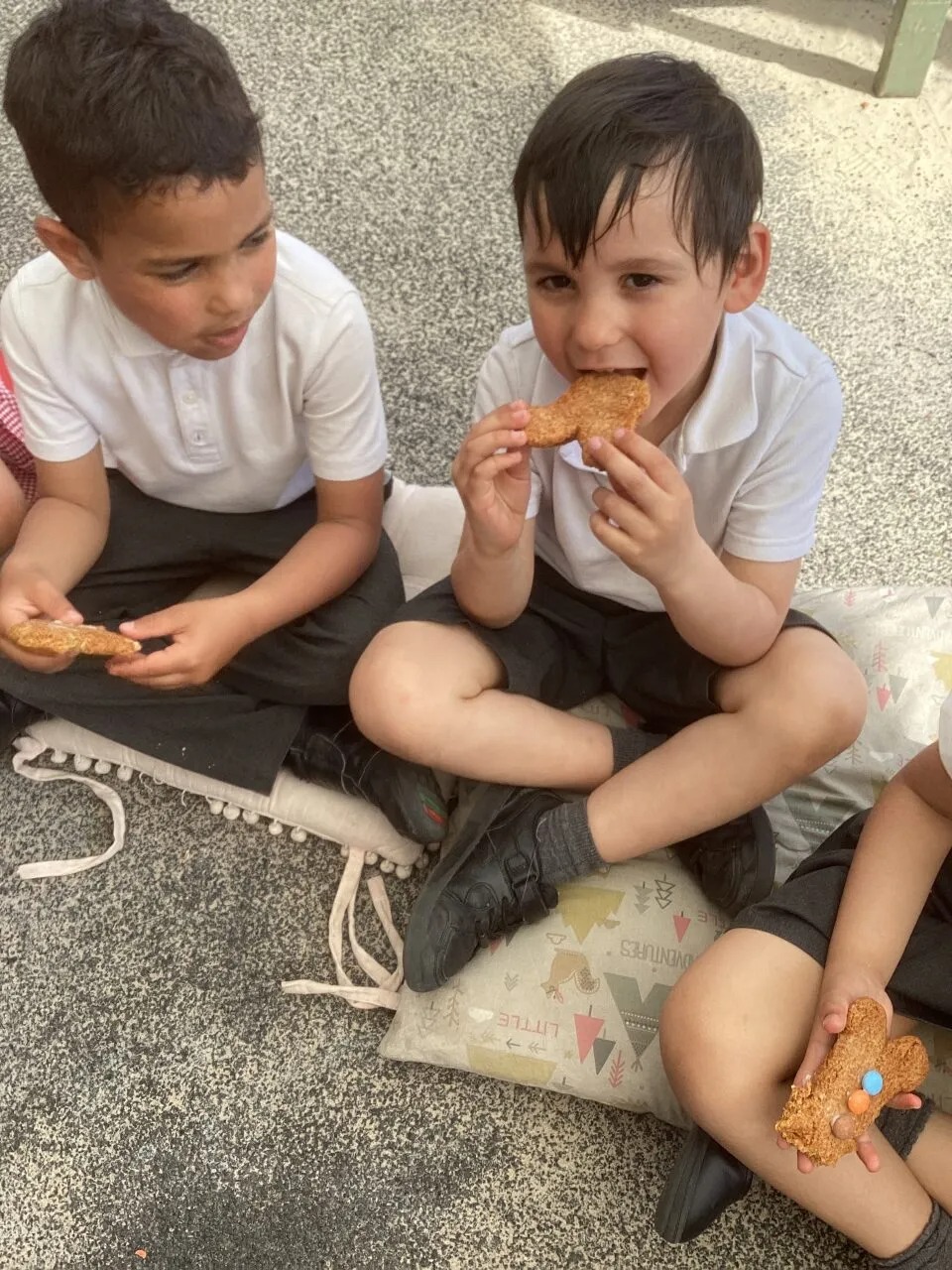 We have had a lovely week this week. We have been learning more about what happened to Jesus at Easter and how we can try to be more like him every day. We have written all about our exciting owl experience last week, the children remembered so many facts. We enjoyed making our gingerbread men the most though!