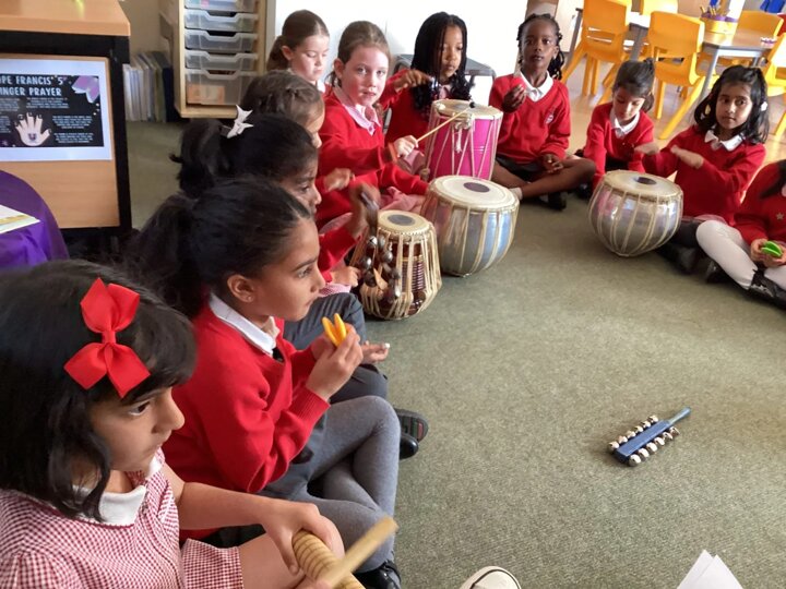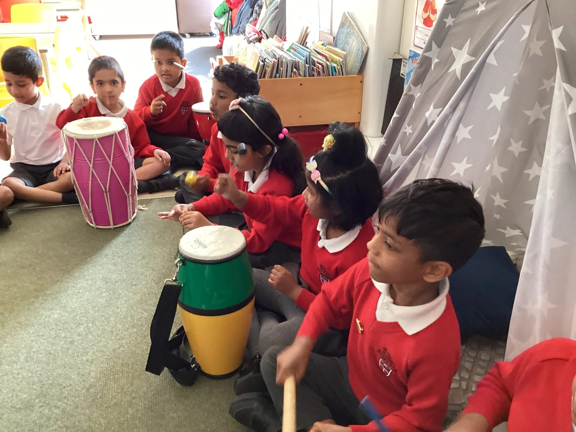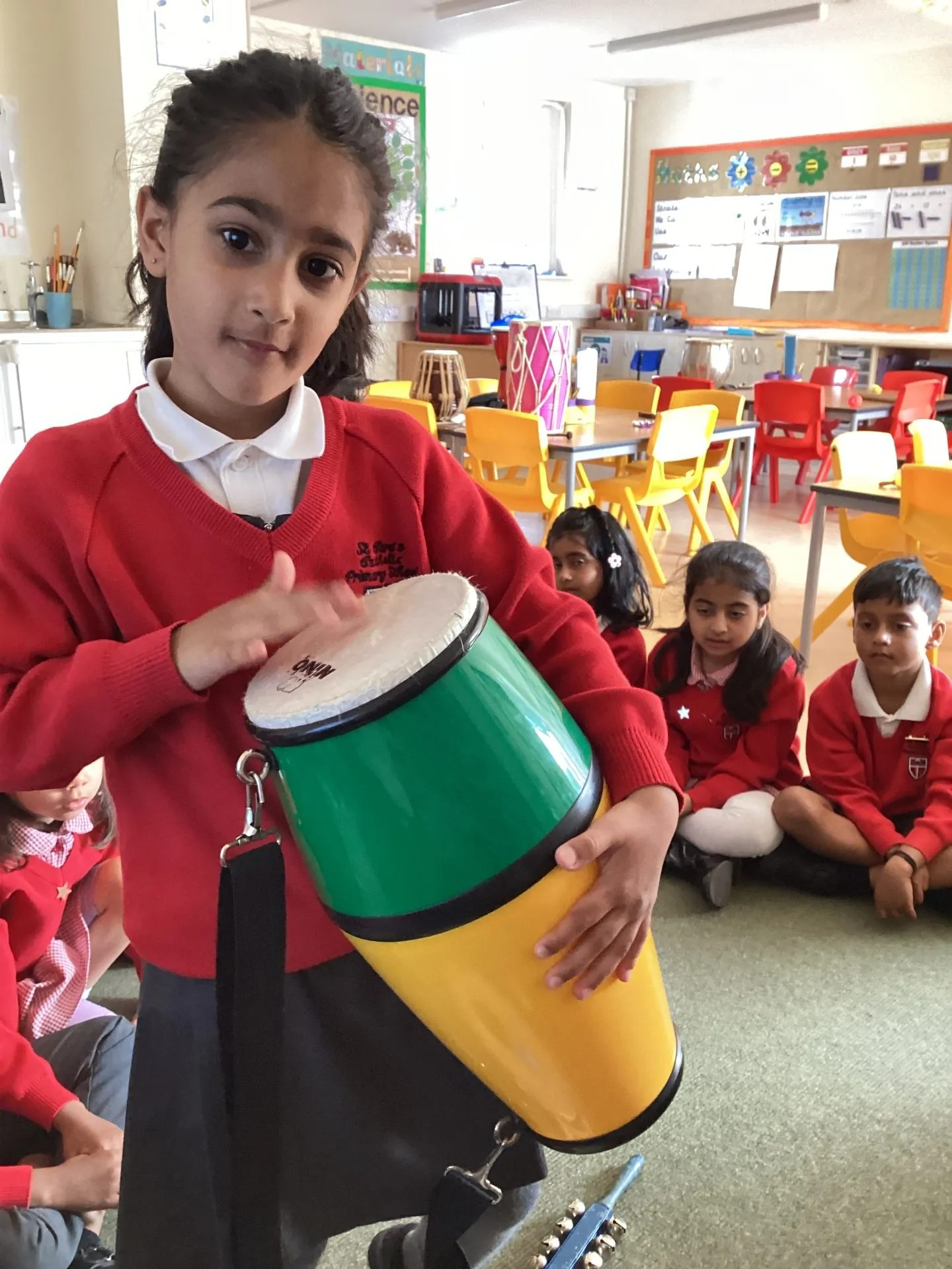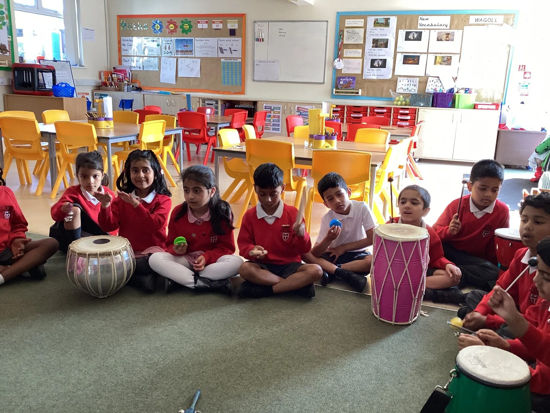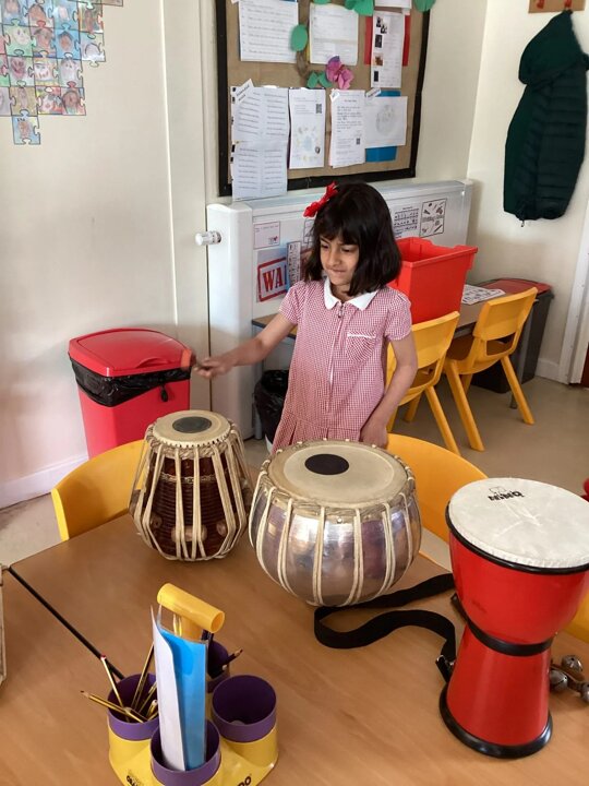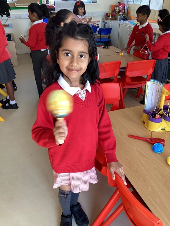 In Music this week, we had lots of fun exploring different instruments! We became Musical Explorers by playing tambourines, drums, maracas, and more, sorting them into musical families like percussion, wind, and strings. It was like a musical treasure hunt, discovering how each instrument made it’s sound. Then, we played a fun Rhythm Echo game, where our Mr Cummings and Miss Martinez clapped rhythms and we had to copy them — sometimes fast, sometimes slow! We also created our own mini compositions using instruments, experimenting with making our music louder, quieter, faster, and slower. It was amazing to see how much we can do with music when we work together and use our creativity!