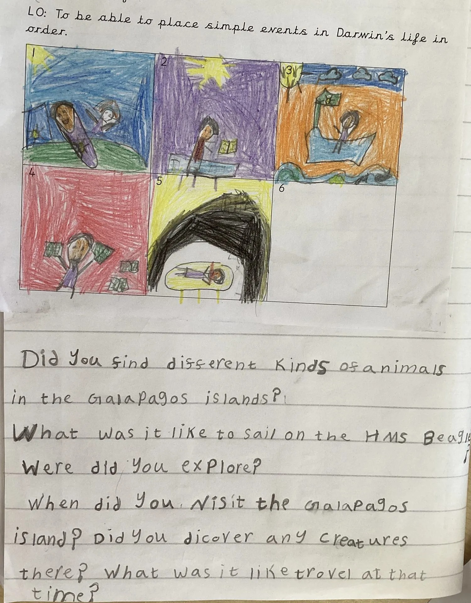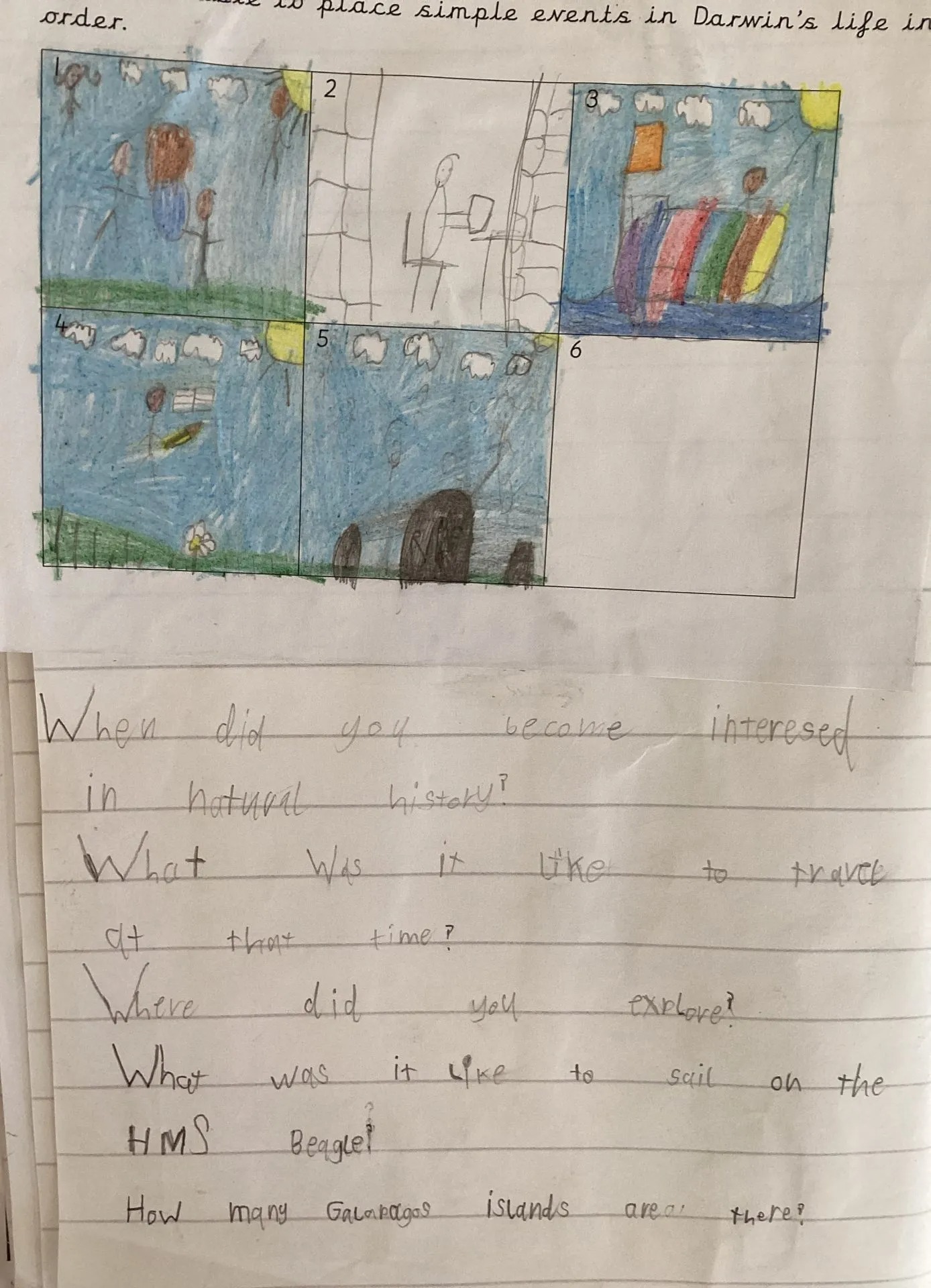 We’ve carried on our adventure learning about Charles Darwin, sharing lots of facts about his life and his famous voyage on the HMS Beagle. We talked about how he spent years exploring the Galápagos Islands, observing turtles and finches, and making notes about how animals and plants adapt. Inspired by this, we discussed insightful questions we’d love to ask him – like “What was the most surprising creature you discovered?” and “How did you feel sailing across oceans in the 19th century?” We even imagined what it would be like to have a species named after us, just like Charles Darwin’s frog (Rhinoderma darwinii). It made us feel like real little naturalists on our very own voyage of discovery!