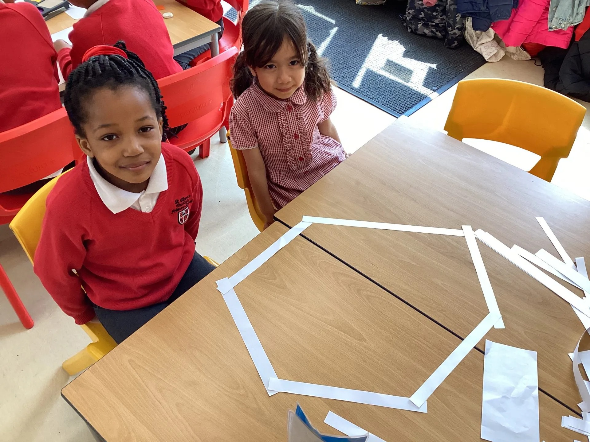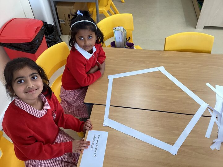 This week in Maths, we’ve become shape detectives! We’ve explored all kinds of regular and irregular 2D shapes, building pictures using strips of paper and naming their sides and vertices like true shape experts.