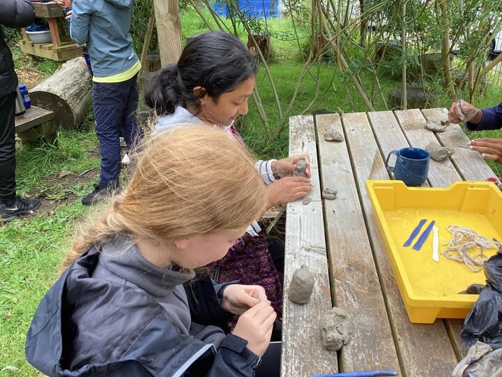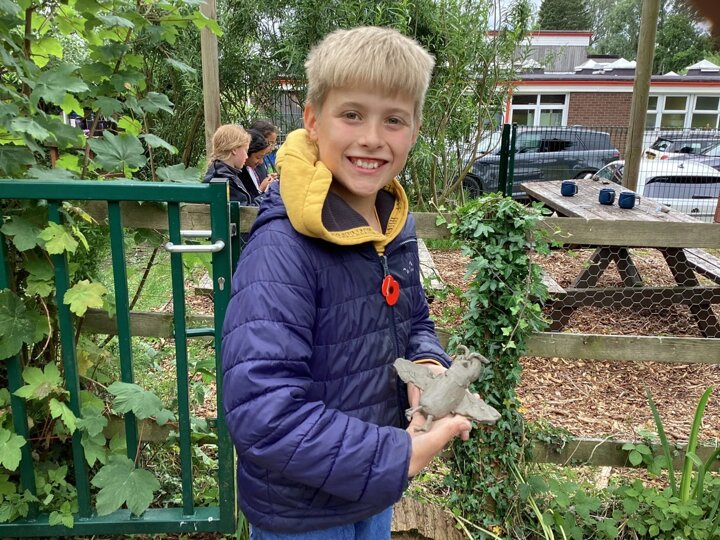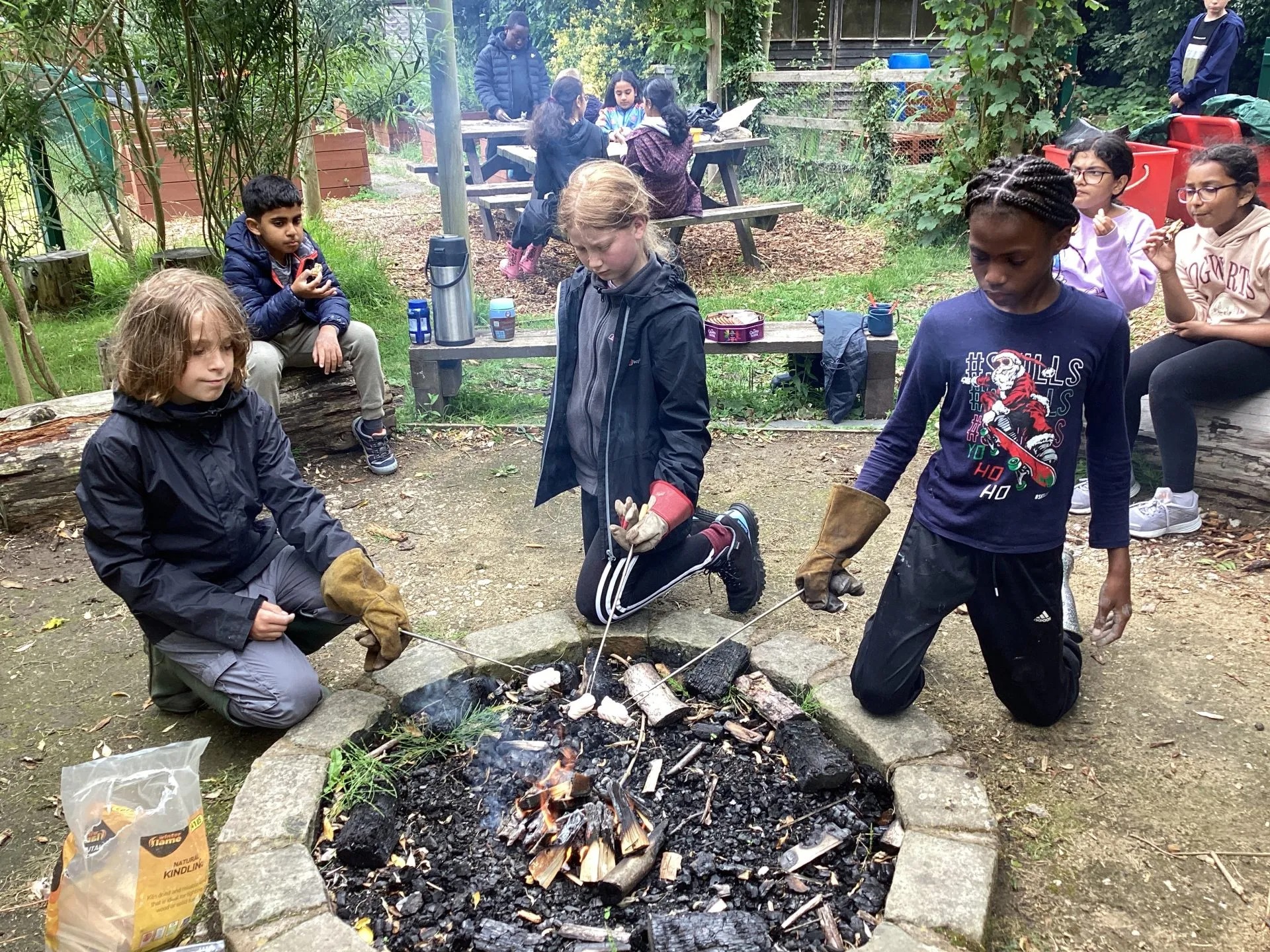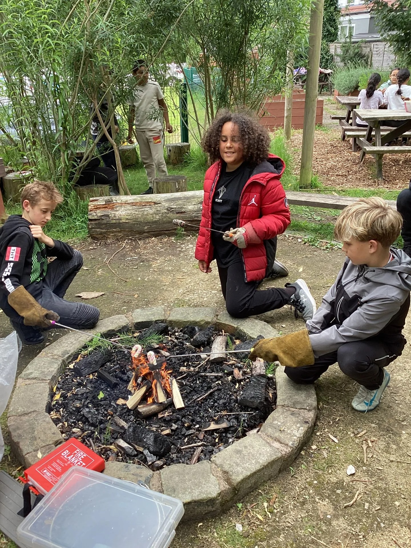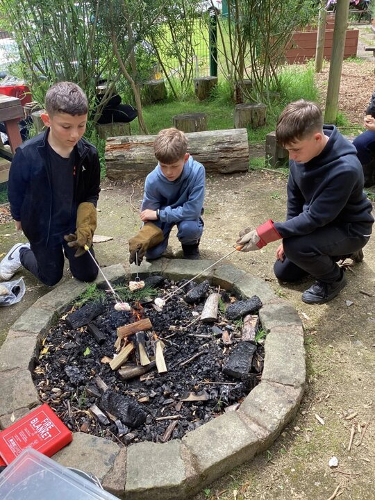 Fire week. This is always a highlight of the forest term. The children recapped fire safety rules first. Then they enjoyed toasting a marshmallow and using it to make a smore. Some children made some amazing forest animals out of clay. While others helped clean the pond and hunted for frogs and froglets. We were lucky to have Derek come and help us drill screws into our bench, next week we can decorate it and show off the final product.