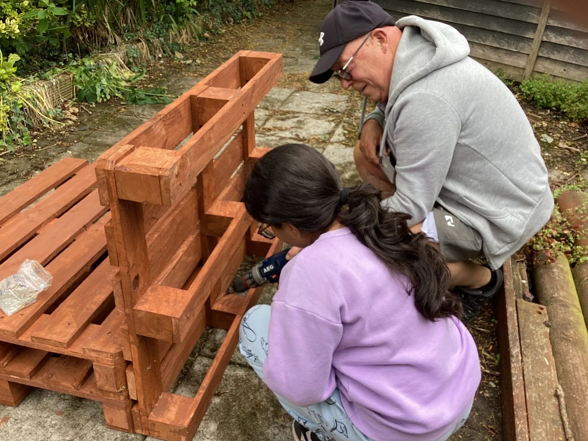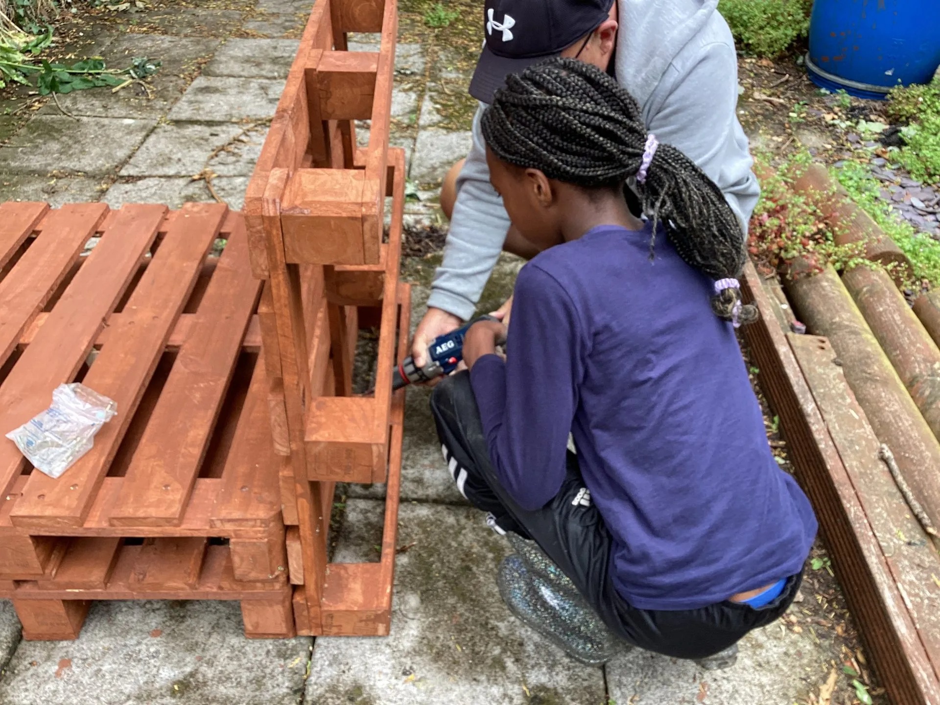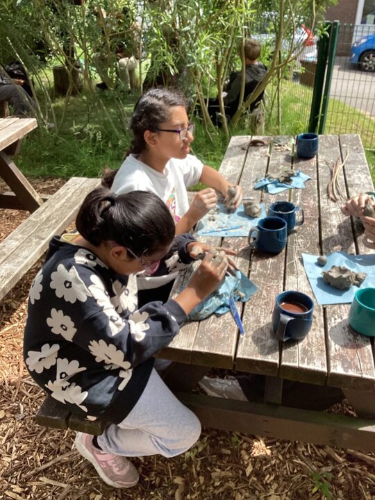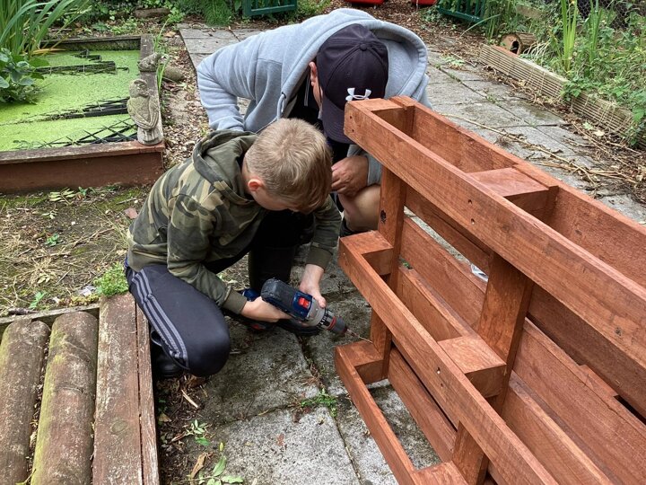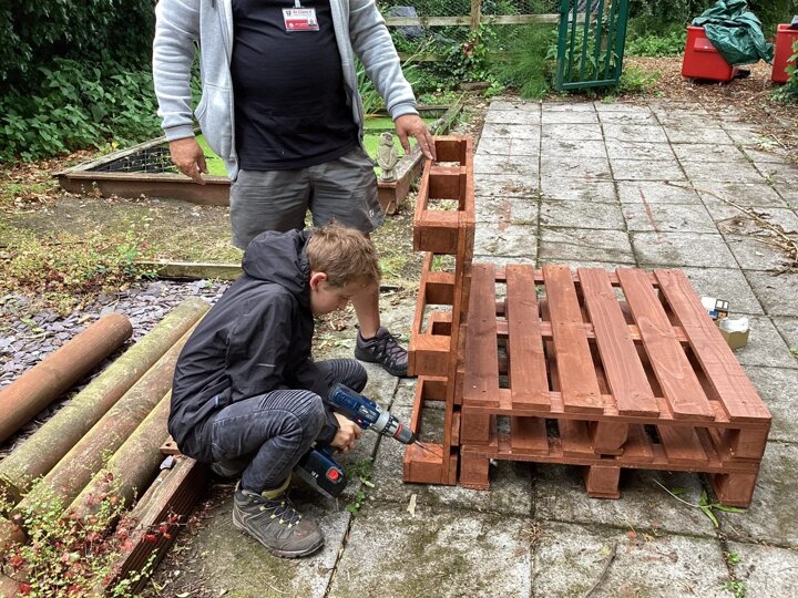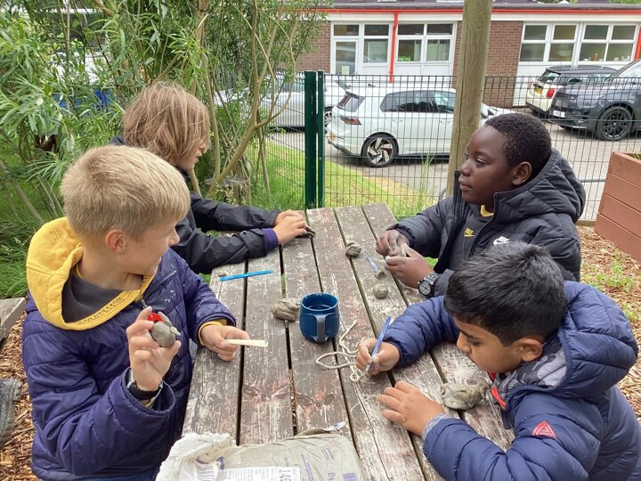 Fire week. This is always a highlight of the forest term. The children recapped fire safety rules first. Then they enjoyed toasting a marshmallow and using it to make a smore. Some children made some amazing forest animals out of clay. While others helped clean the pond and hunted for frogs and froglets. We were lucky to have Derek come and help us drill screws into our bench, next week we can decorate it and show off the final product.