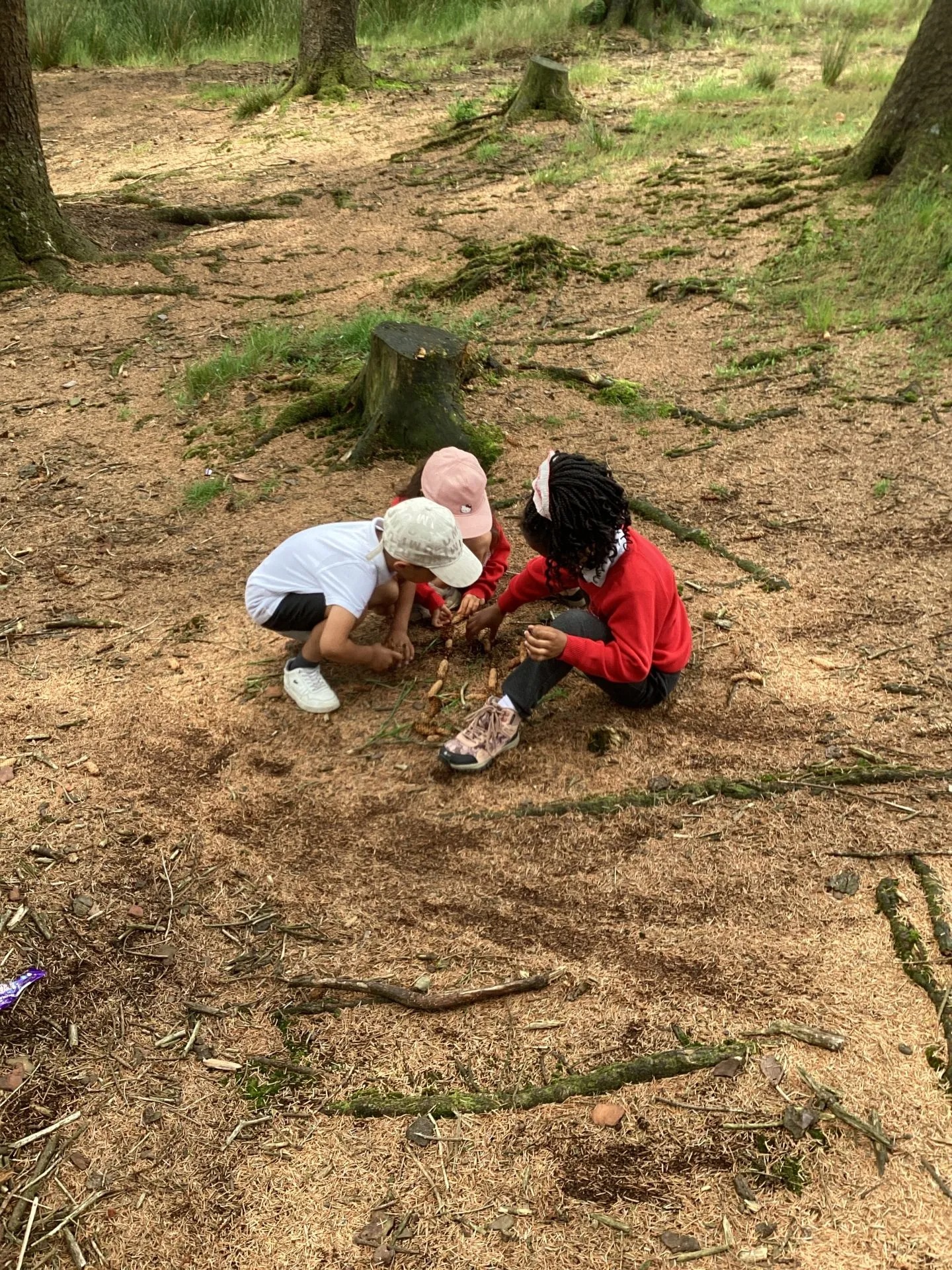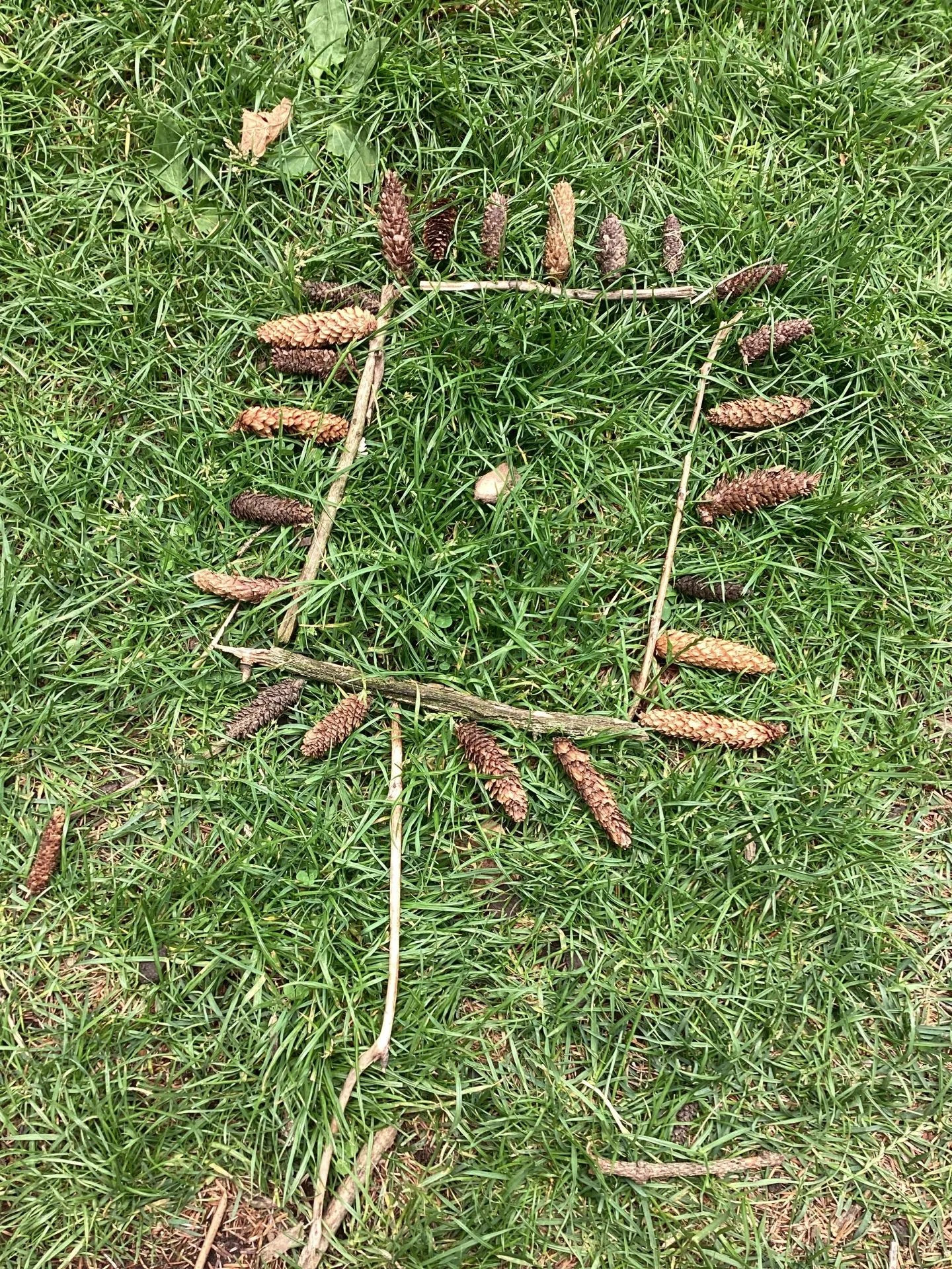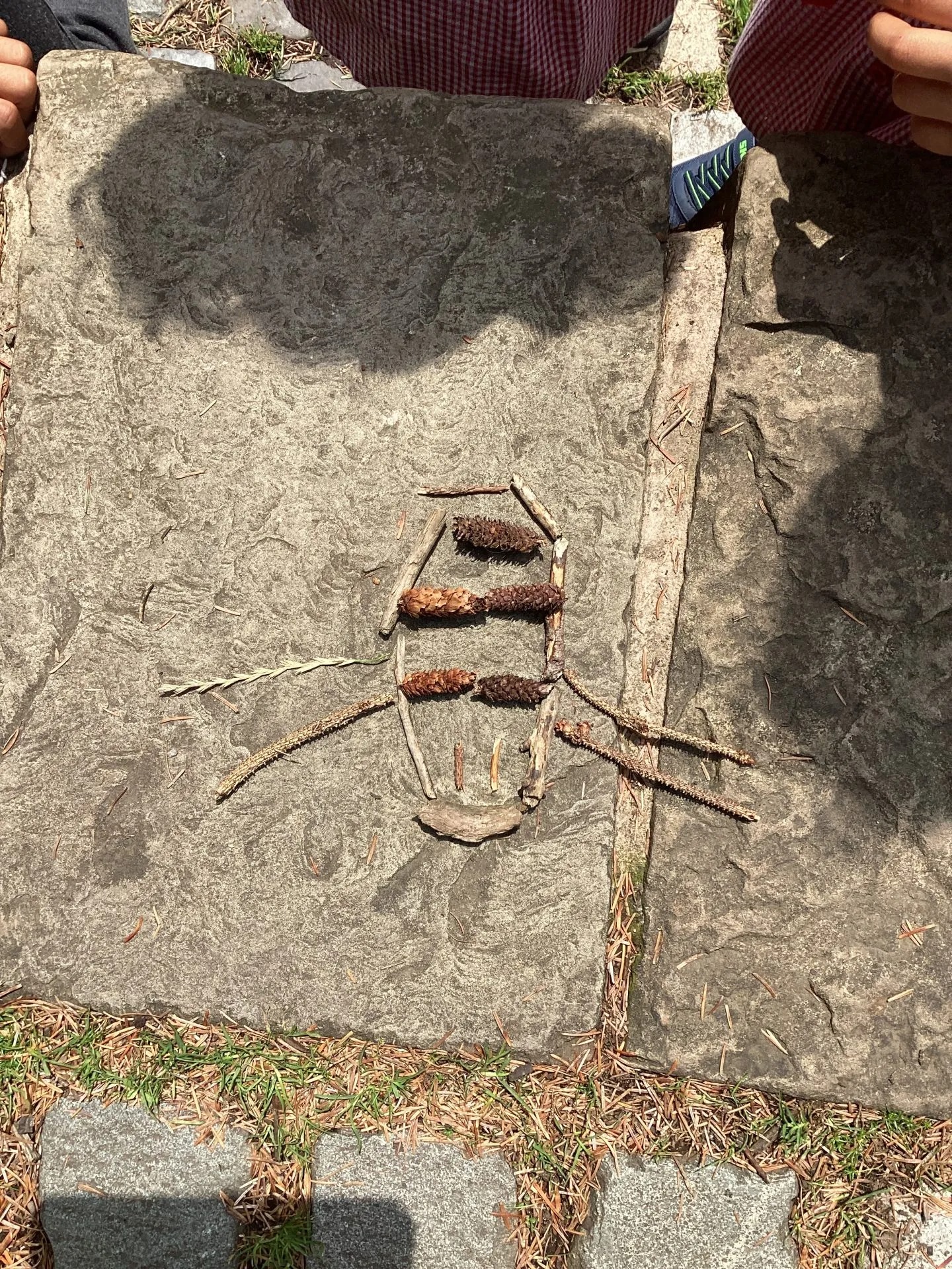 In the afternoon, it was time to get creative. We gathered leaves, sticks, pinecones and whatever else we could find (that wasn’t too muddy!) and used them to build our own nature sculptures. Some looked like animals, others like the sculpture we had seen during the day – everyone had their own ideas.