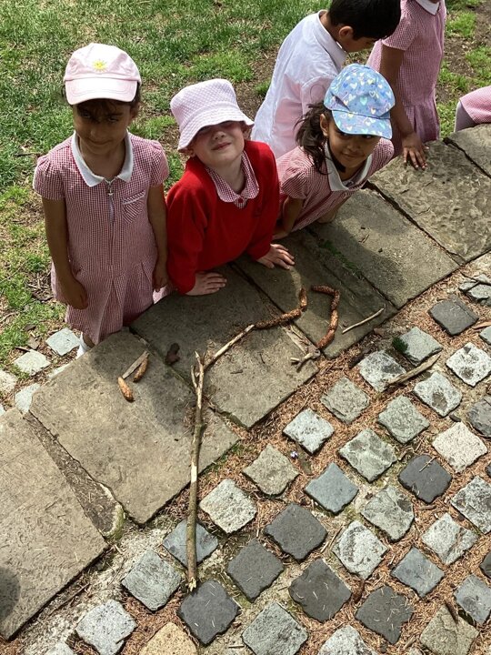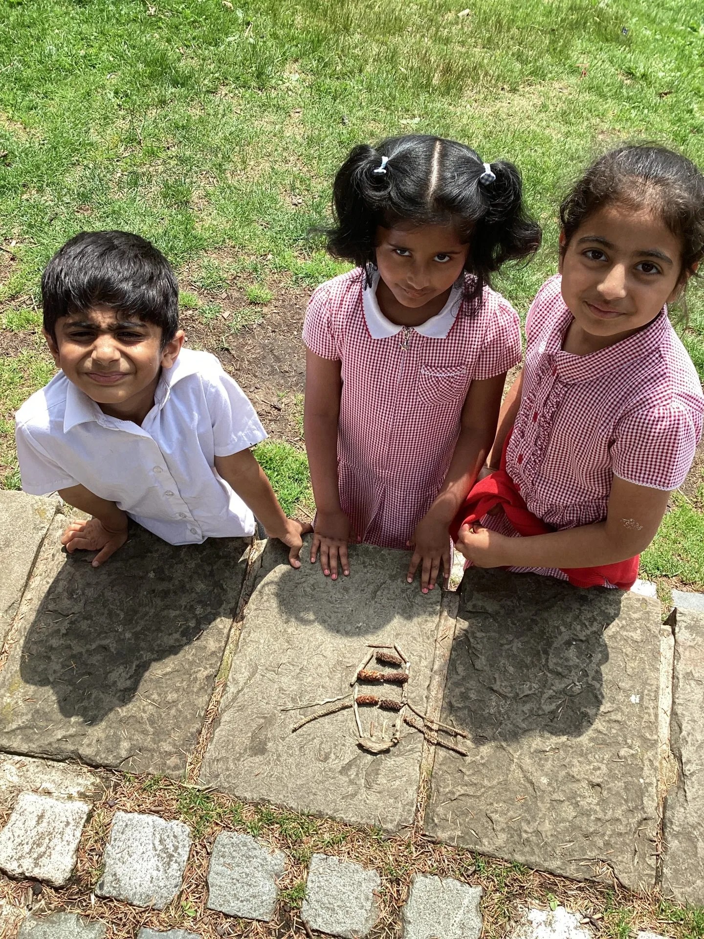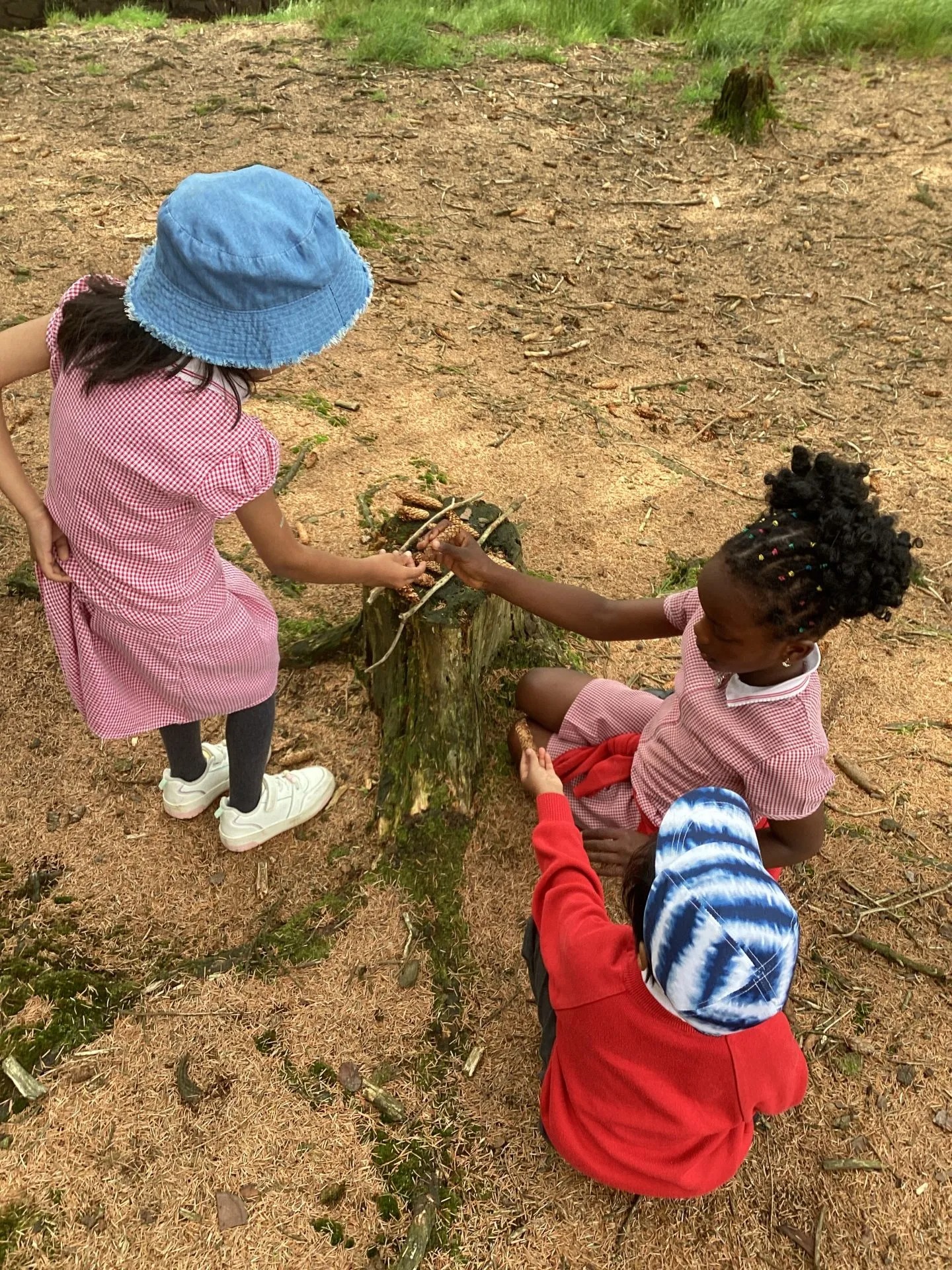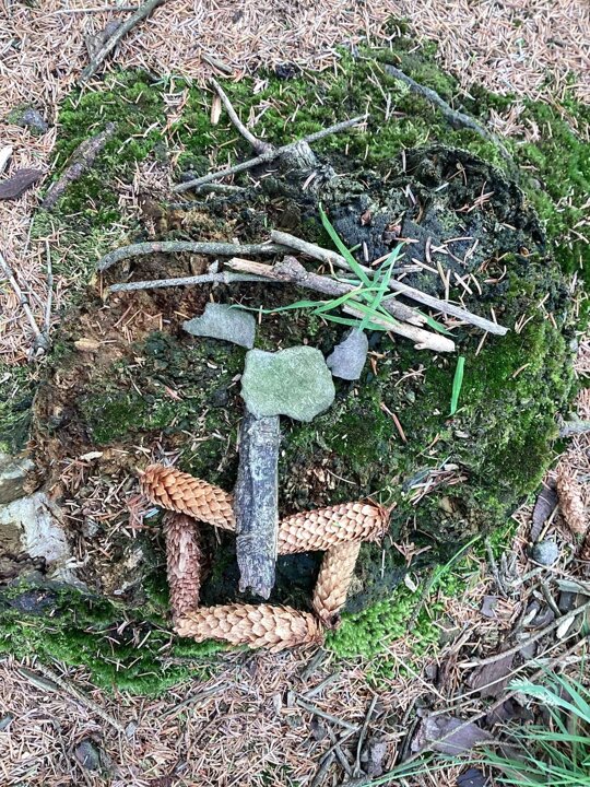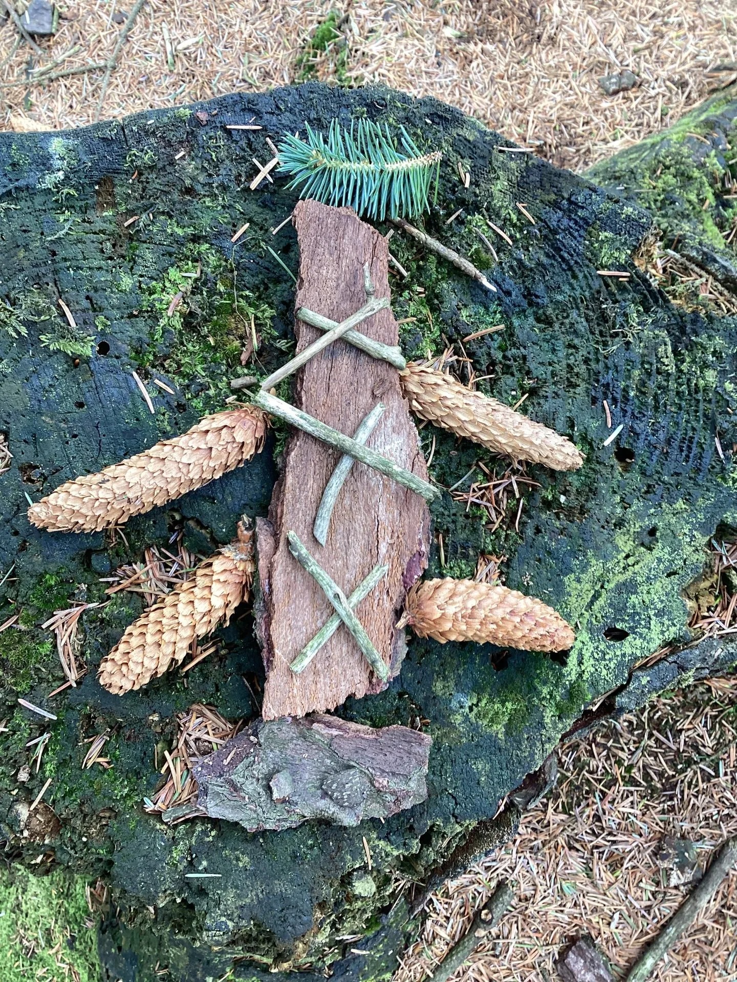 In the afternoon, it was time to get creative. We gathered leaves, sticks, pinecones and whatever else we could find (that wasn’t too muddy!) and used them to build our own nature sculptures. Some looked like animals, others like the sculpture we had seen during the day – everyone had their own ideas.