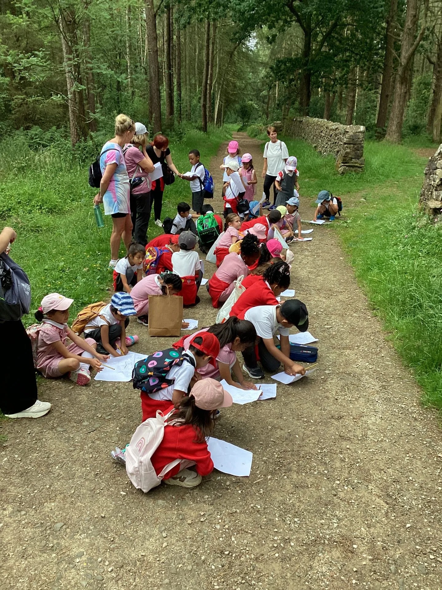 As soon as we got off the coach, we were straight into exploring. We followed a trail through the trees, looking out for natural sculptures – some were easy to spot, others were hidden and needed a bit more detective work! We had our paper and pencils with us and tried our best to draw what we saw – twisty branches, funny-shaped rocks, and loads of mossy bits.
