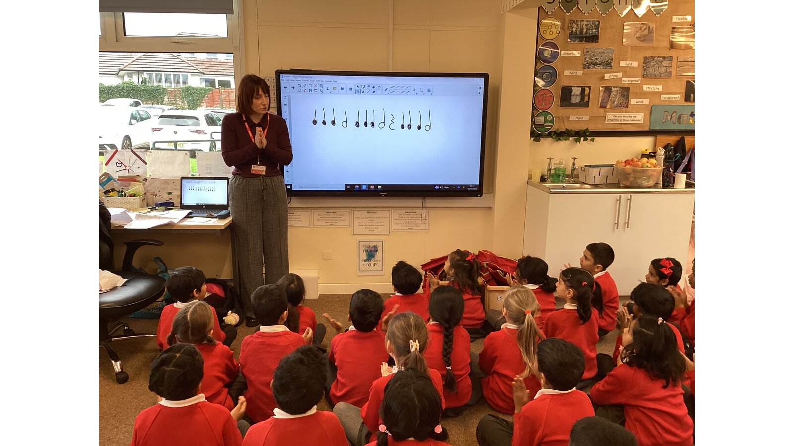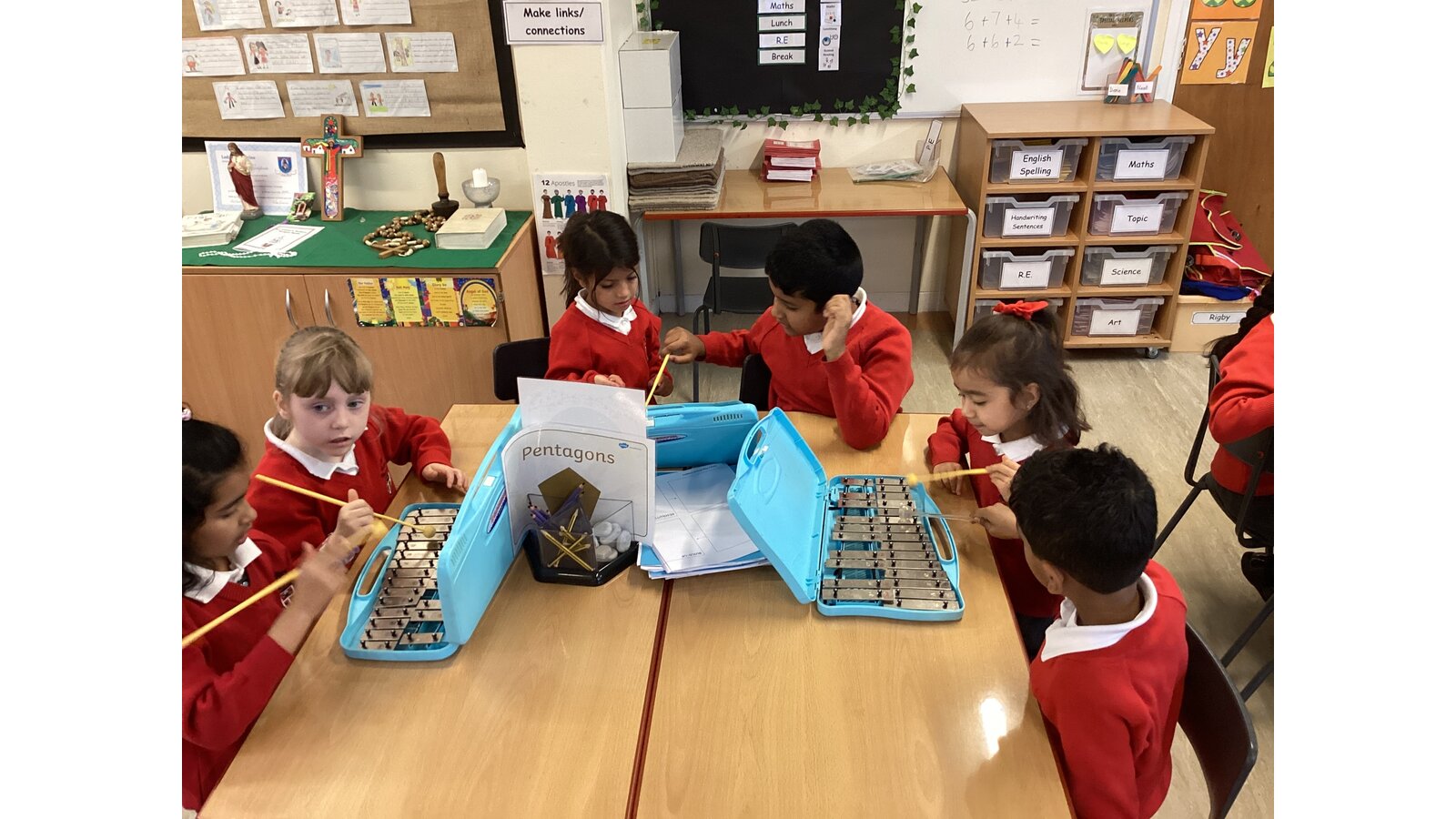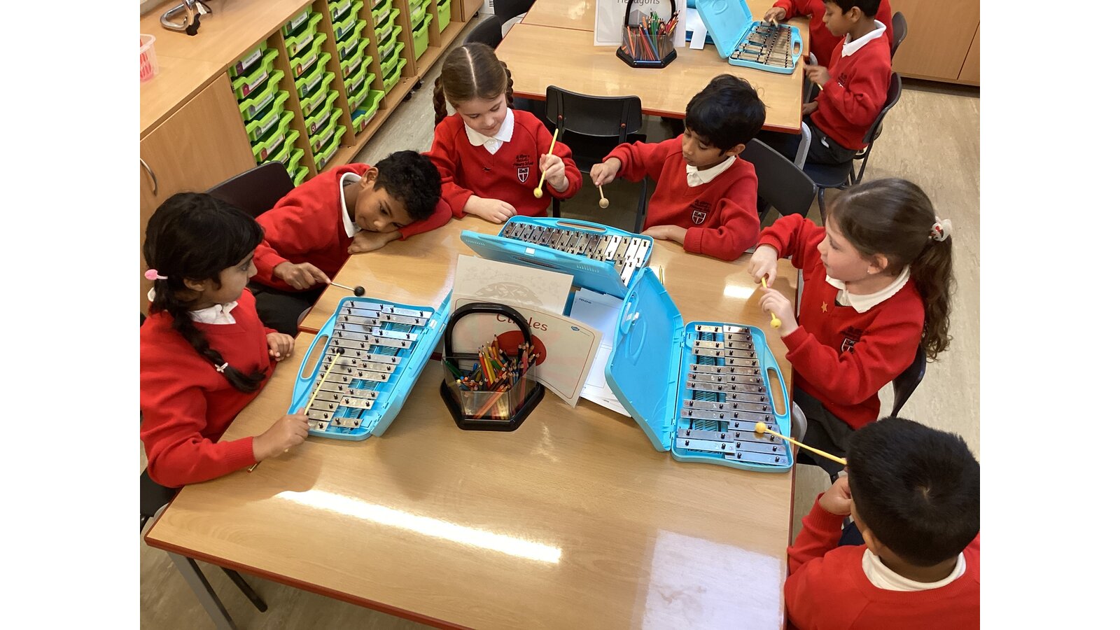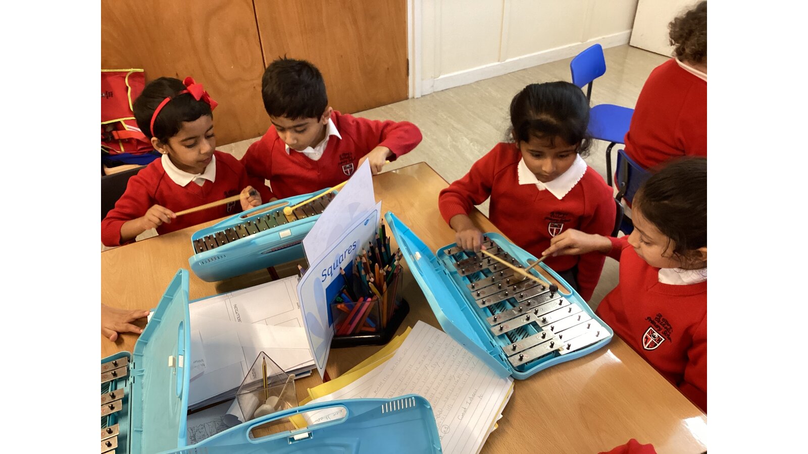 In music, we looked at the minim. We heard the crotchet and minim played on the piano and then went to use the glockenspiels to play different rhythm patterns using the notes.