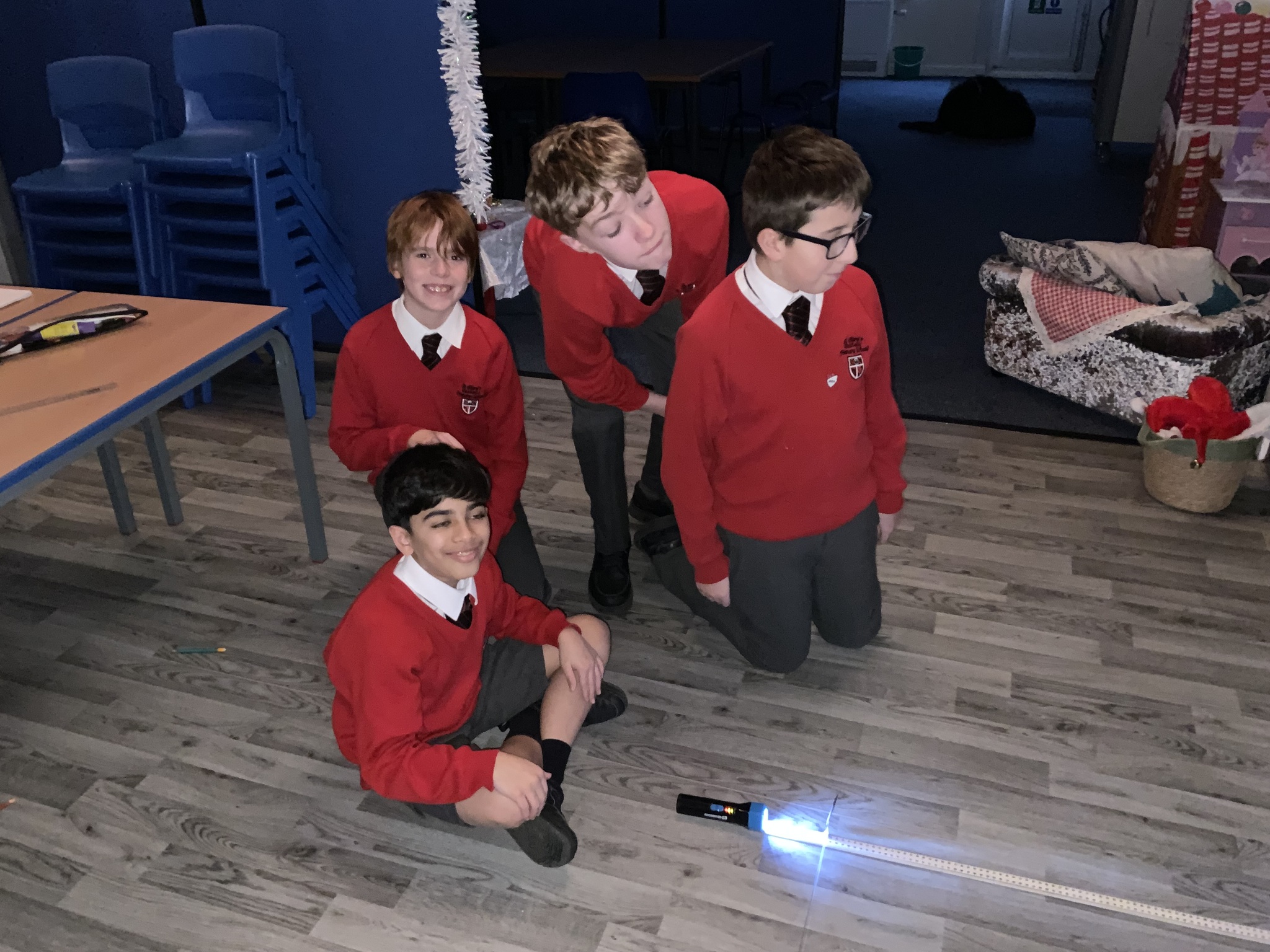 This week, Year 6 have had an incredible time filled with learning and special moments! In Science, we carried out an exciting experiment to find out how the distance from a light source affects the size of a shadow. We discovered that when an object is closer to the light, its shadow becomes much larger, and when it moves further away, the shadow gets smaller and sharper. It was fascinating to see how light travels in straight lines and how objects block it to create shadows.