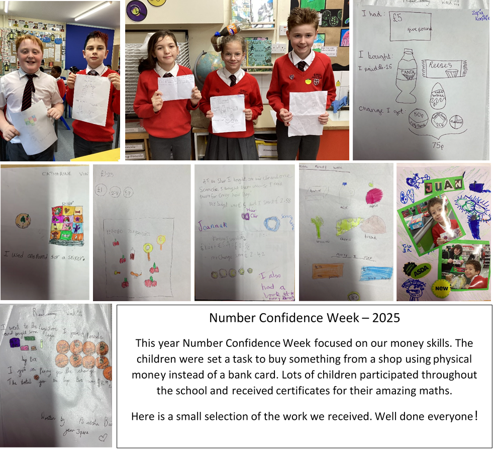 We believe it is important for children to be able to recall fundamental facts rapidly and use these within more complex mental and written calculations. We aim to provide opportunities for problem solving within other curriculum areas so that the children’s mathematics is purposeful and enjoyable. St. Clare’s mathematics curriculum follows Lancashire’s Learning Excellence Mathematics plans, White Rose Scheme, National Centre for Excellence on the Teaching of Mathematics and Maths No Problem and is in line with the requirements of the National Curriculum.